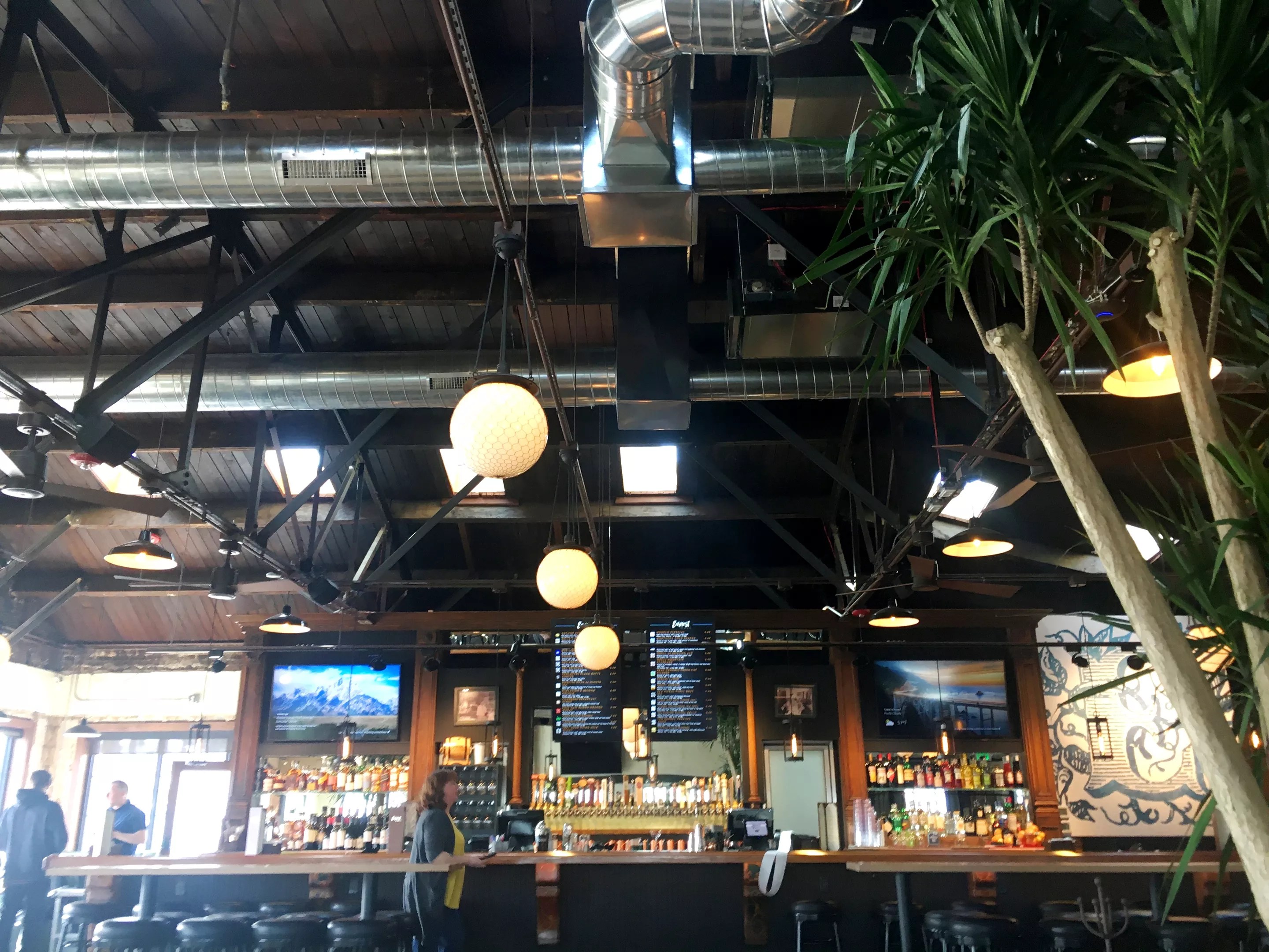 The old bar, even older ceiling and new tropical plants at Earnest Hall.