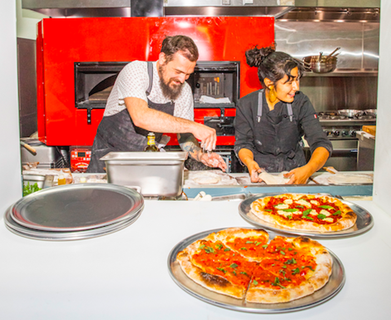 The pizza oven has both gas and wood fire components, which serves a dual purpose, allowing the team to both char pies and roast veggies beautifully. The technique gives the produce an interesting flavor, according to Bernayey. “I take pride in cooking whole vegetables without substitutions,” he says. “It’s very simple: If you order the cabbage, you’re going to get a [quarter] cabbage, braised, roasted and charred.”