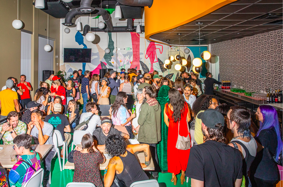 Murals by local artist Lio-Bravo Bumbakini add to the energetic atmosphere and give the dining room the feeling of a club. “Music has always been a part of Somebody People. Here we’ve got a fun music program evolving, and we’re definitely going to be having DJs within the space and late-night parties,” Maher concludes.