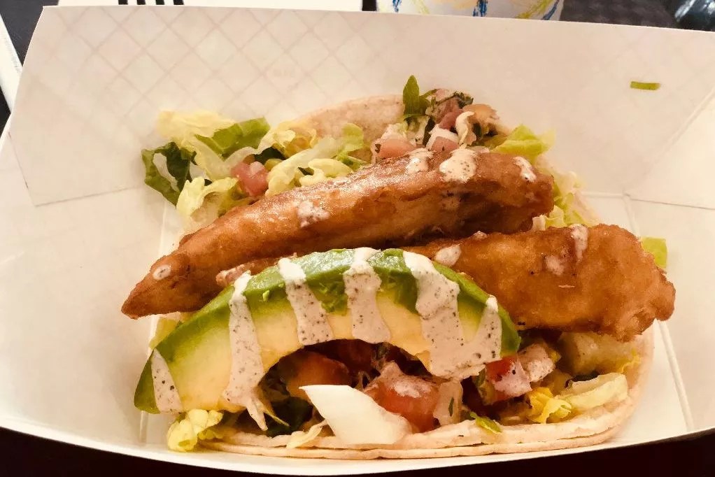 I didn’t realize it at the time, but quickly figured out that Sabor is a well-oiled machine in which everyone stationed on the line does their job efficiently and with care: grilling up savory meats, chopping fresh veggies, breading and frying fish, and serving piping-hot refried beans and rice. They all knew my fish taco was coming, and the last person I saw at the register assured me that they were frying the fish to order and she’d personally deliver it to my table. Only two minutes later, I received a neatly assembled taco that was as beautiful as it was tasty; a warm white-corn tortilla housing a briny beer-battered fish filet atop a pico de gallo-laced slaw and an artfully drizzled tangy dressing on top. Well worth the extra couple minutes of waiting and unnecessary stress I’d experienced thinking they’d forgotten it.