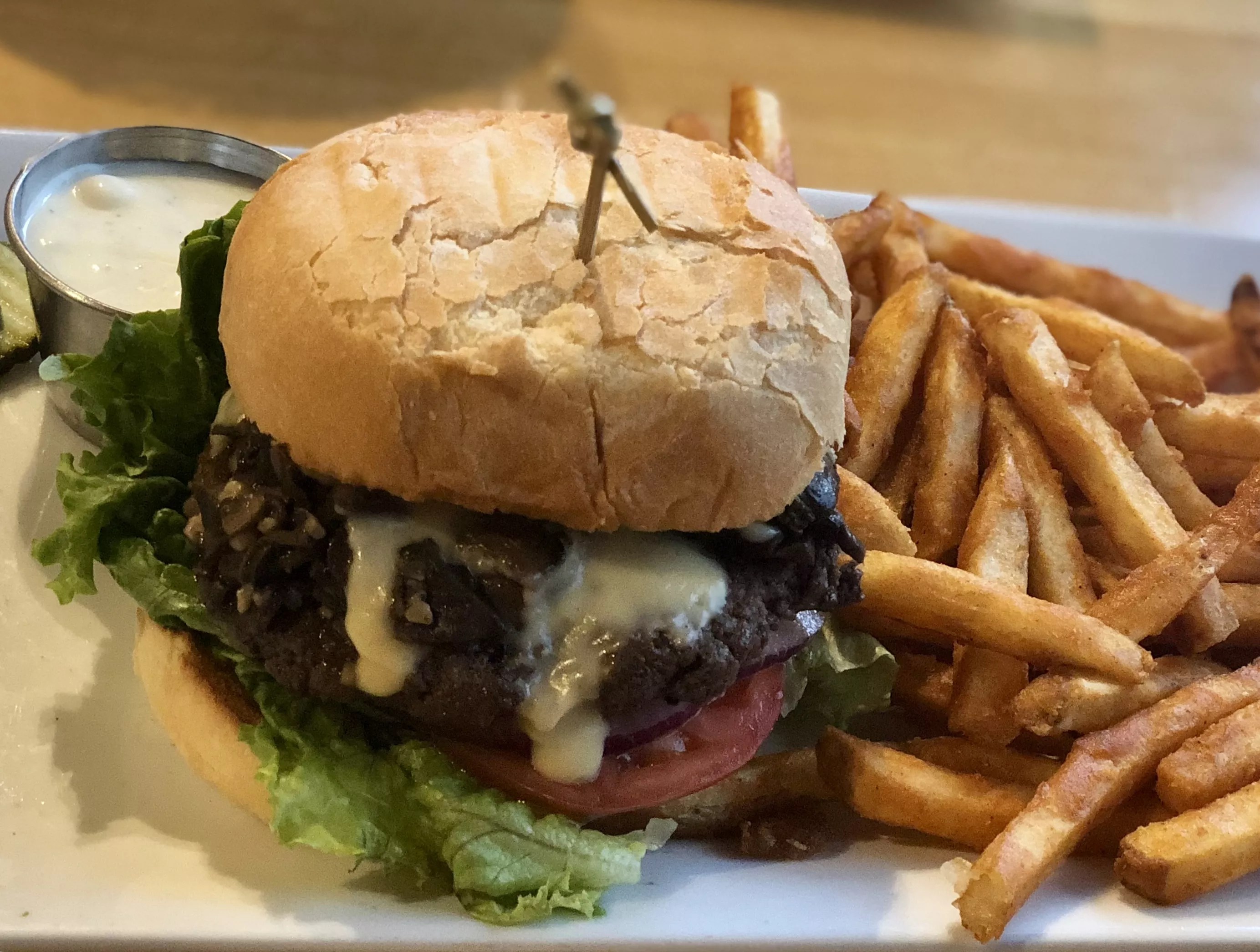 The hand-formed burger comes on a locally made potato bun.