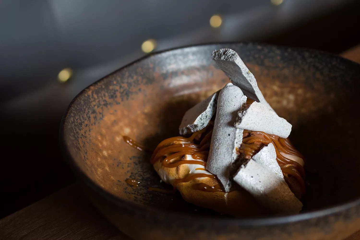 Concourse’s take on Rocky Road, with coconut and pistachio meringue, chocolate sorbet and caramel.