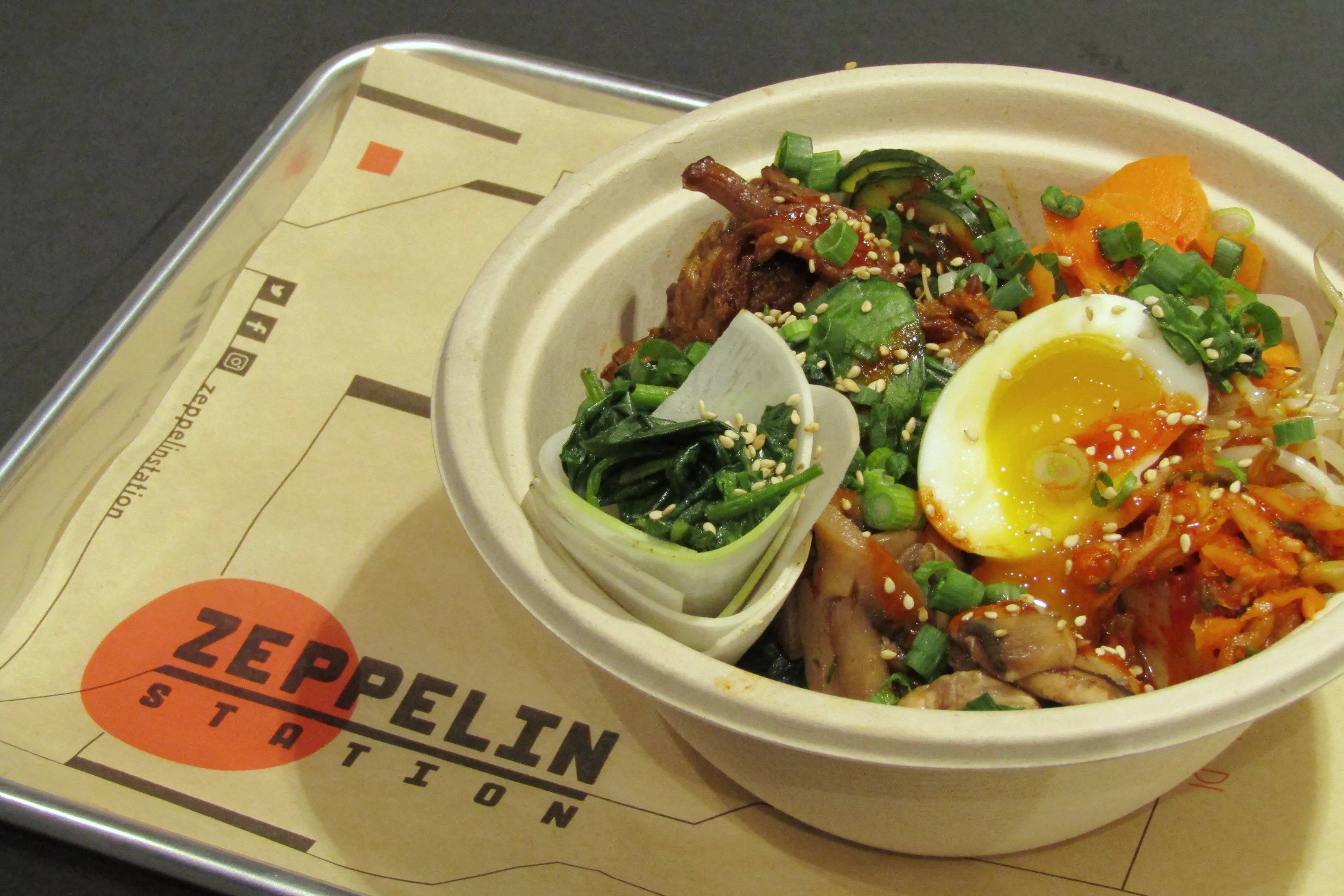 Zeppelin Station’s various food vendors are open throughout the day, with coffee service beginning at 7 a.m. (8 a.m. on the weekend) at Dandy Lion, lunch and dinner at all the counters served from 11 a.m. to 9 p.m. (1 a.m. on Friday and Saturday), and the bar open at Big Trouble until midnight (2 a.m. on Friday and Saturday). Visit the Zeppelin Station website for more details.