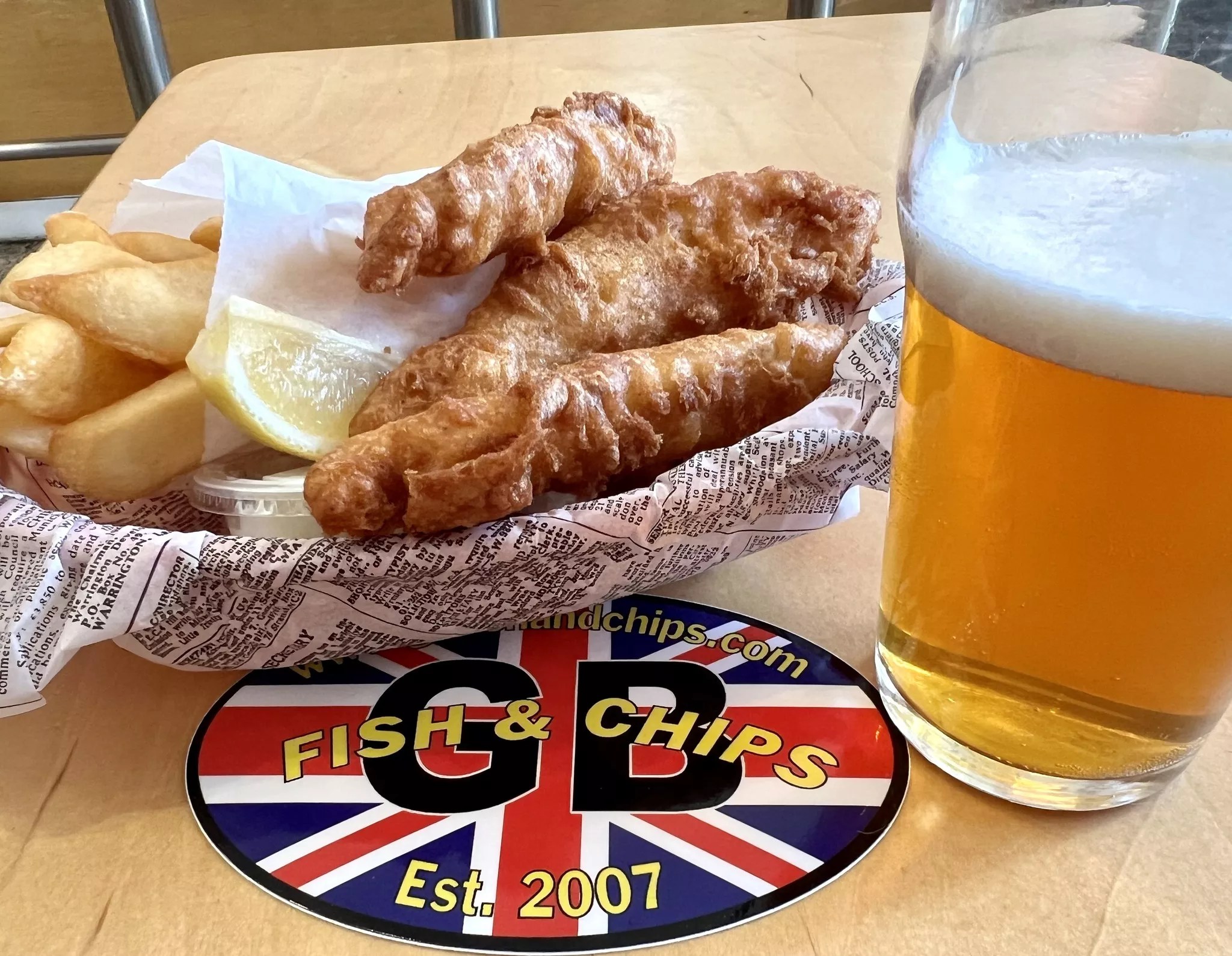 GB Fish & Chips is a popular local chain, and one spot where you can get a banger on the side.