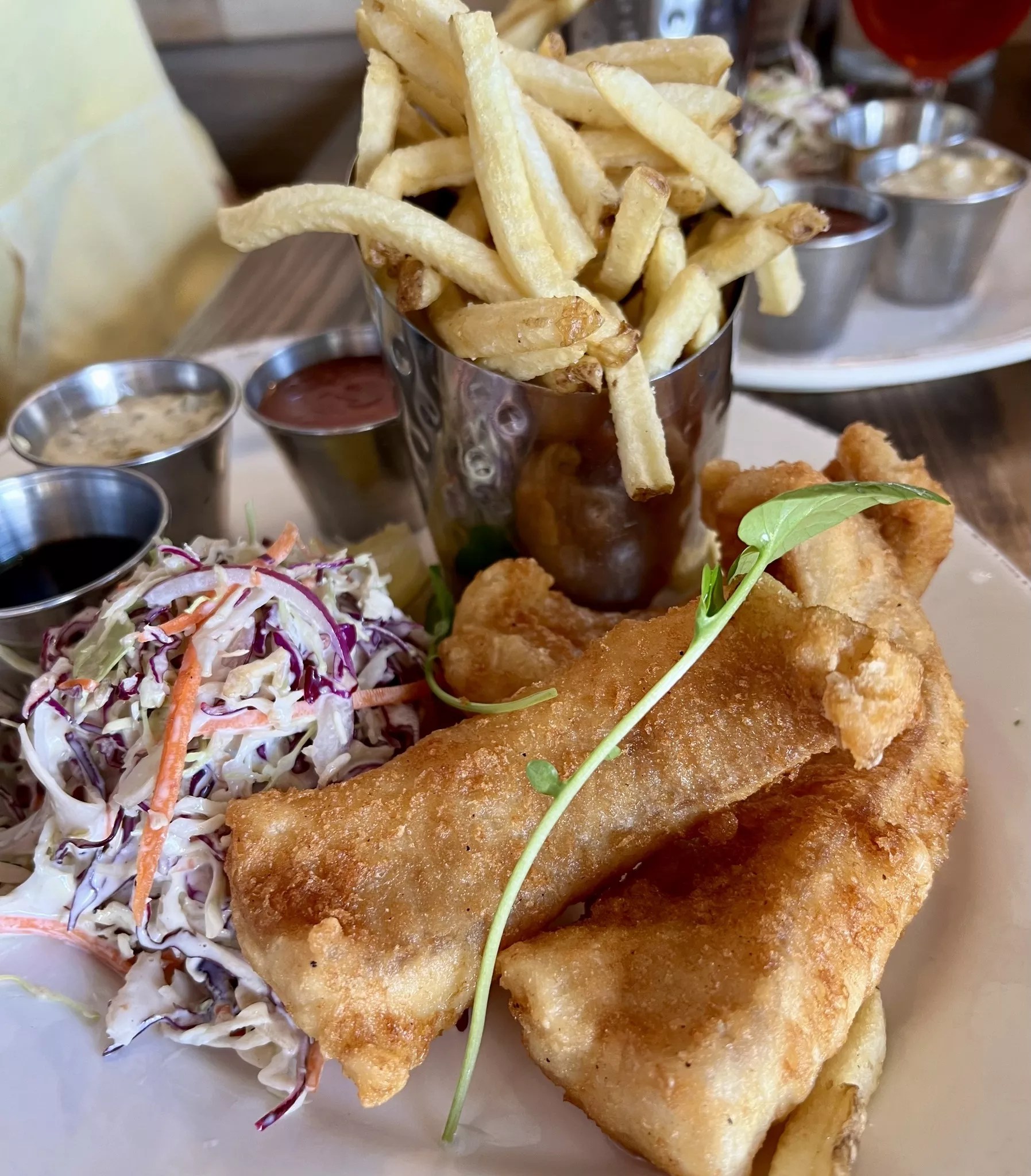 After his family moved to Texas in the 1970s, his fish and chips cravings continued. “Absent decent local choices, we found ourselves settling for places like Long John Silver’s at least once a week. Quite the struggle!” he shares.