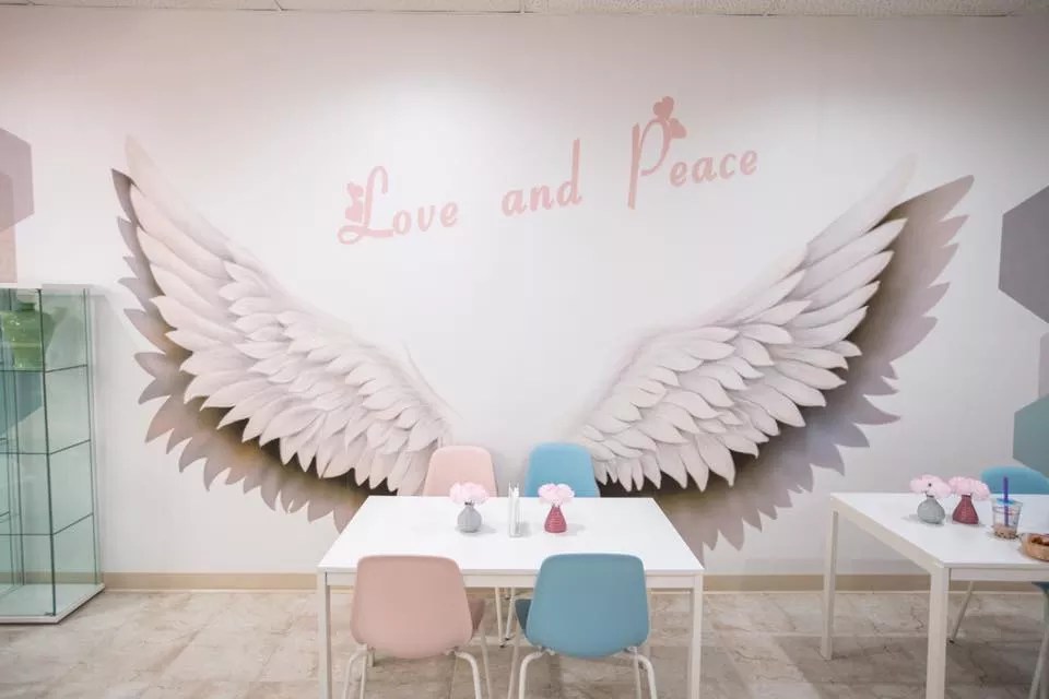 Walking into Volcano (located in the row of shops on the east side of Aurora’s H Mart) is like stepping into an animated kids’ show. The walls and furniture are done in pastel pinks, blues and greens, with geometric shapes stenciled around the dining room. Most of the chairs seem unusually low-slung, too, but are probably just perfect for young ones. The menu doesn’t look quite as overwhelming as the one at Kung Fu Tea, but there are still several styles (tea, milk tea, ice-blended and specialty), with bobas, jellies, puddings and sweet beans as add-ins. Fried finger foods – both American and Taiwanese (so you can snack on popcorn chicken and cuttlefish balls) – should help balance the sugar rush. If you’re a social-media addict, be sure to take a selfie in front of the angel wings on the wall.