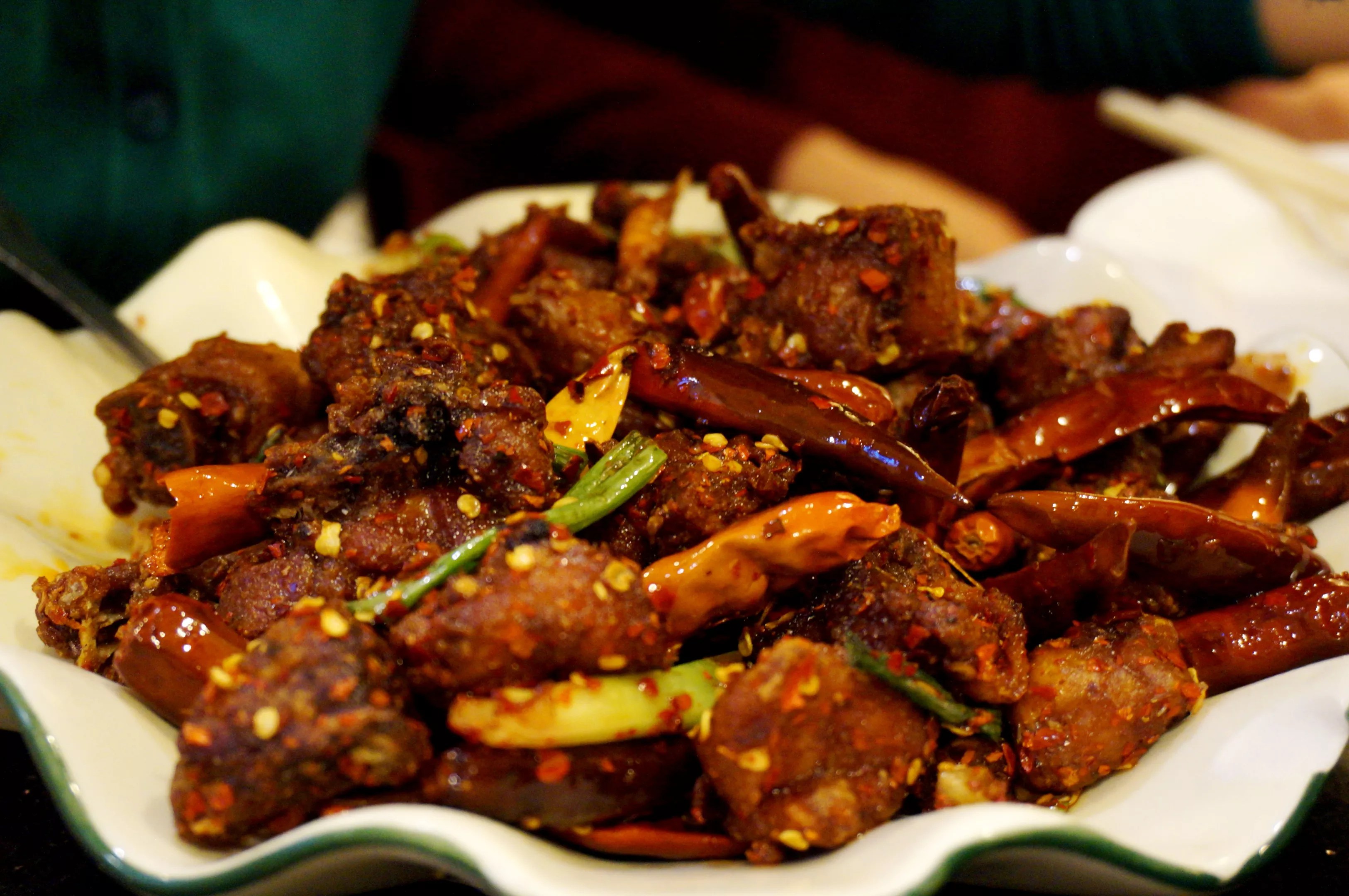 Little Chengdu’s owners actually hail from Jilin province, which sits to the north of the North Korean border, but they’re cooking a broad menu culled from all over the Middle Kingdom. Many of the dishes, like la zi ji ding (or hot and spicy chicken), are hits from Sichuan, but there are also Lanzhou-style noodles and dapanji (big tray chicken), a poultry stew that comes from the northwestern province of Xinjiang. (Legend has it that dapanji was invented by a Sichuan migrant.) Little Chengdu’s hot pot, swimming with chilies. Mark Antonation