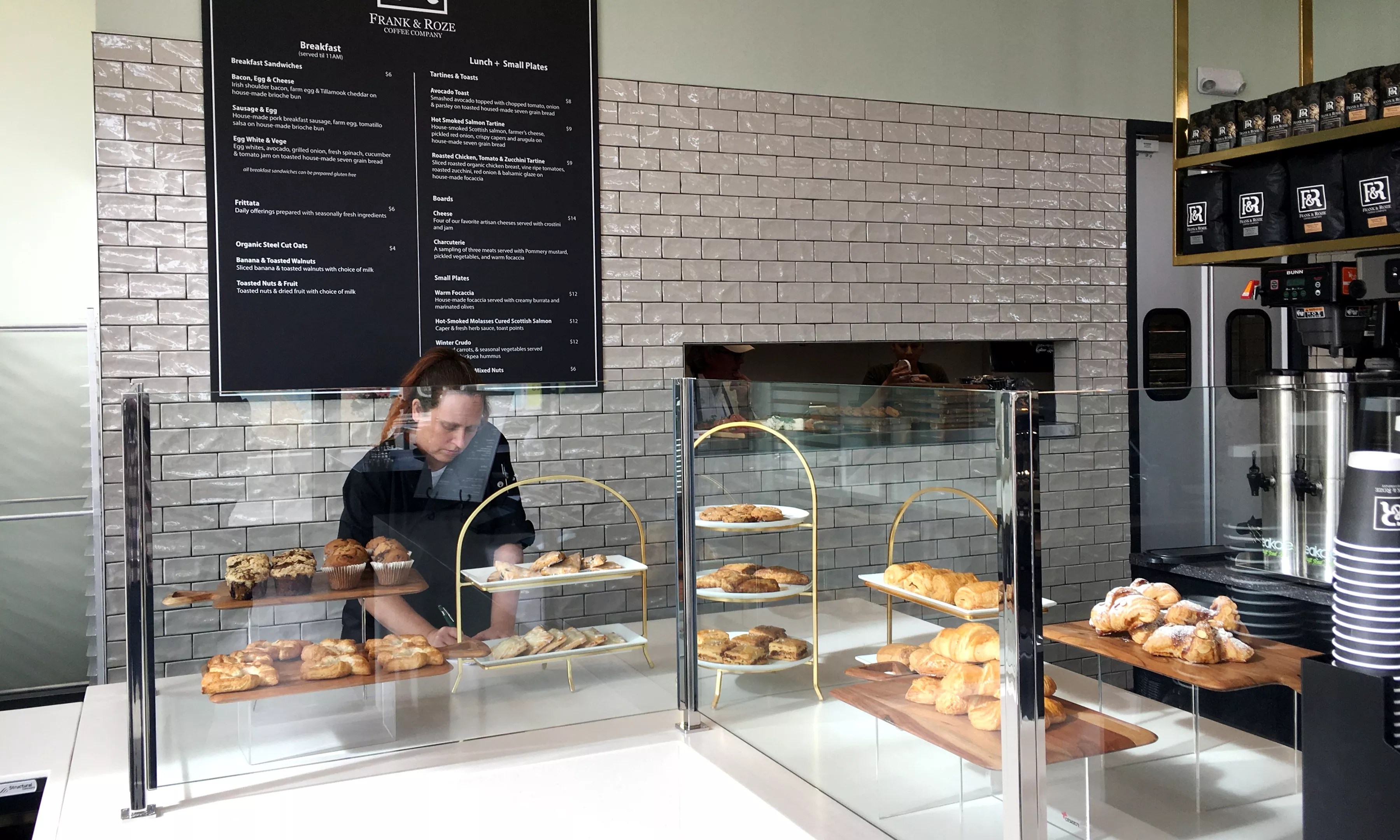 To that end, Frank & Roze will kick things off with housemade pastries, breakfast sandwiches and other light morning fare to go along with espresso drinks made with a proprietary coffee blend. Cold brew and nitro coffee drinks will also be part of the program, with flavored syrups made in-house.