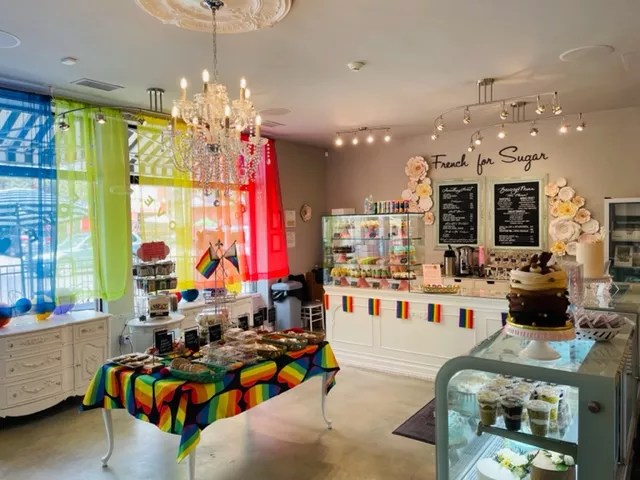 The bakery decorated for Pride. It will also be in an episode of the upcoming Discovery+ show, Generation Drag.