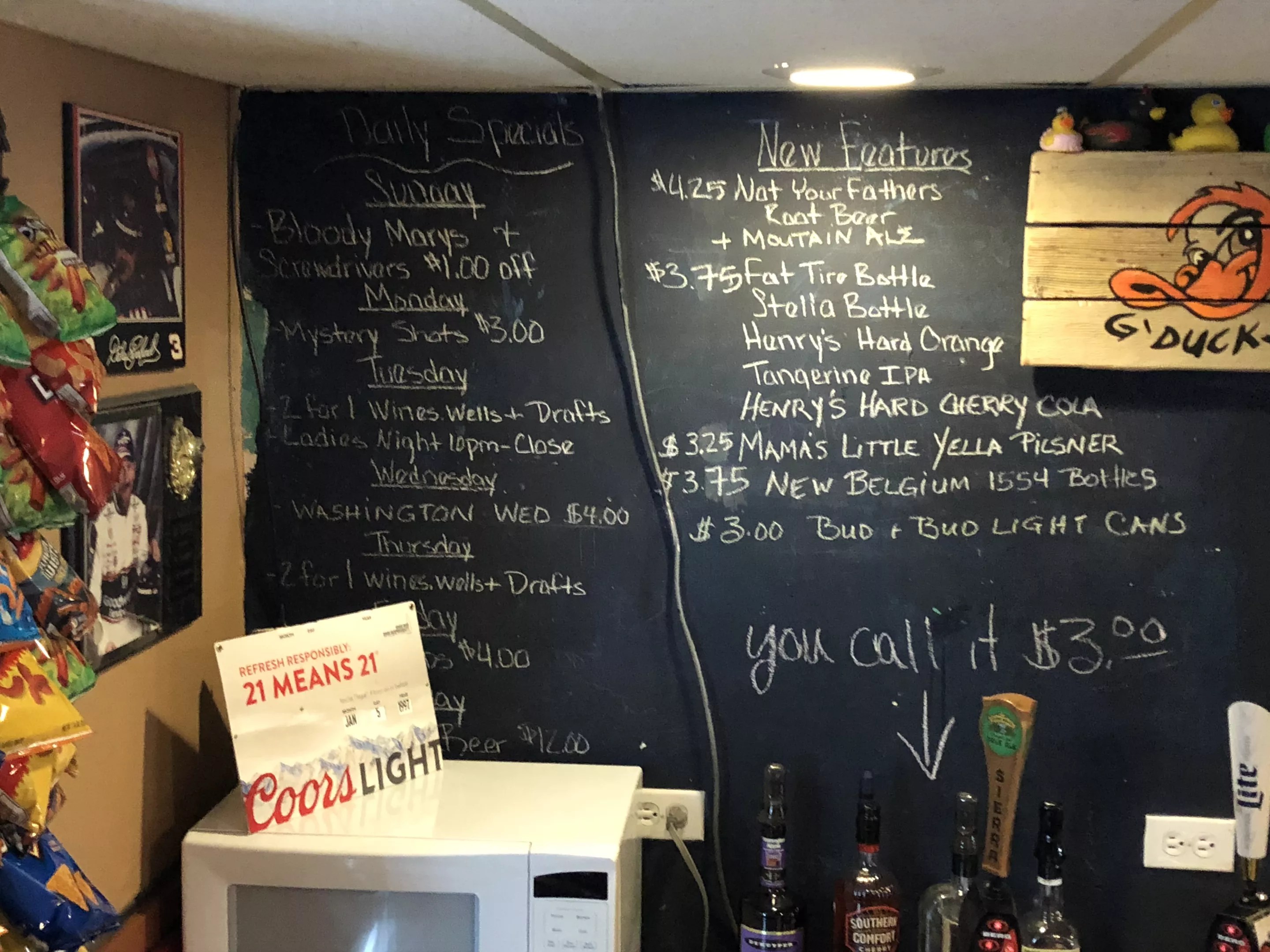 Specials and food and beer menus are easy to find on the chalkboard wall at G’Ducks.