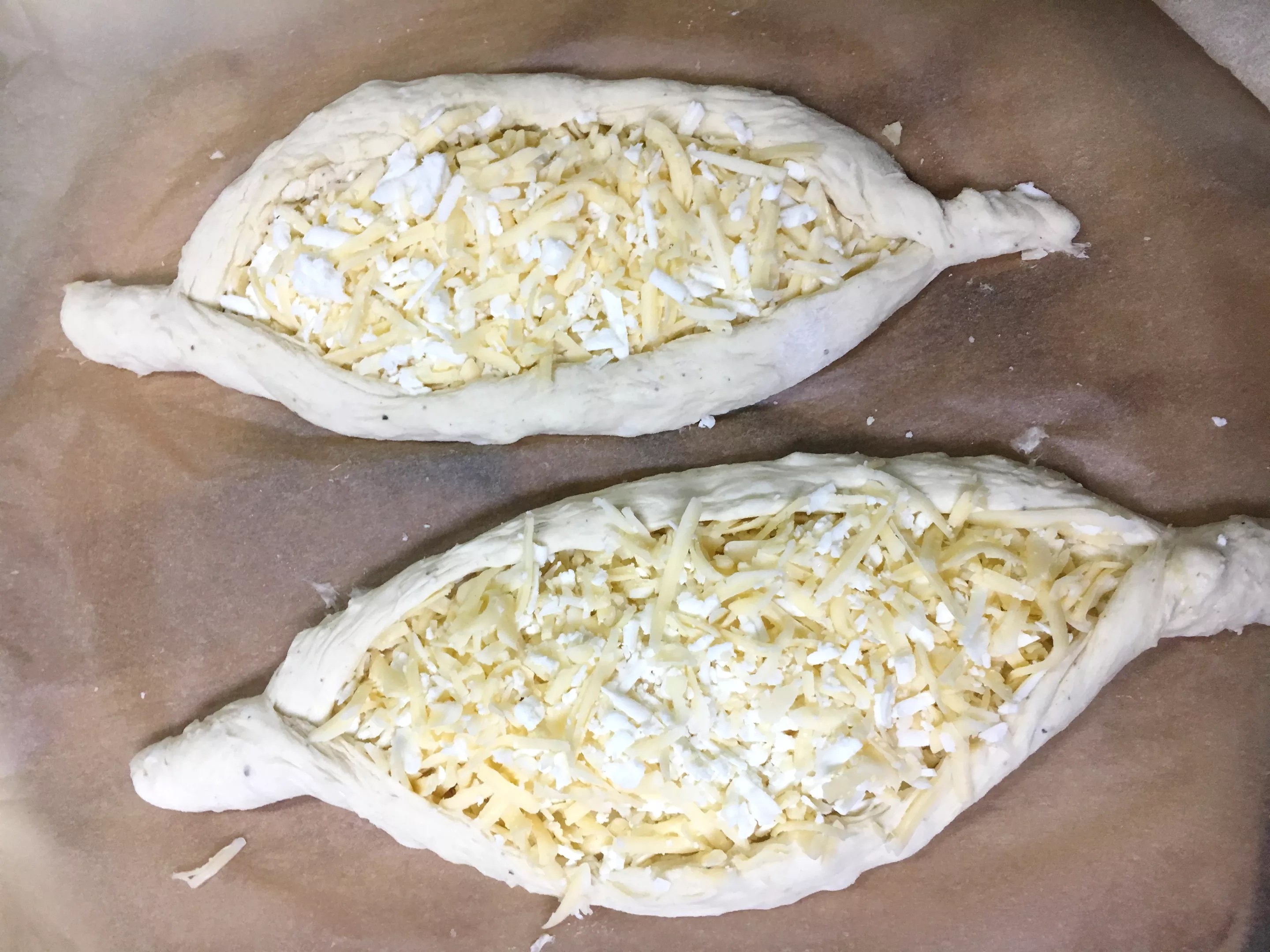 There are several styles of khachapuri in Georgia, some that resemble flaky turnovers with goat cheese on the inside, others that are similar to a cheese calzone, but the most eye-catching is the adjaruli khachapuri, which holds a molten lake of tangy cheese and butter and a sunny egg yolk within the curved walls of crusty, puffy bread dough. Unable to locate this style in a Denver restaurant, I resolved to make it myself at home.