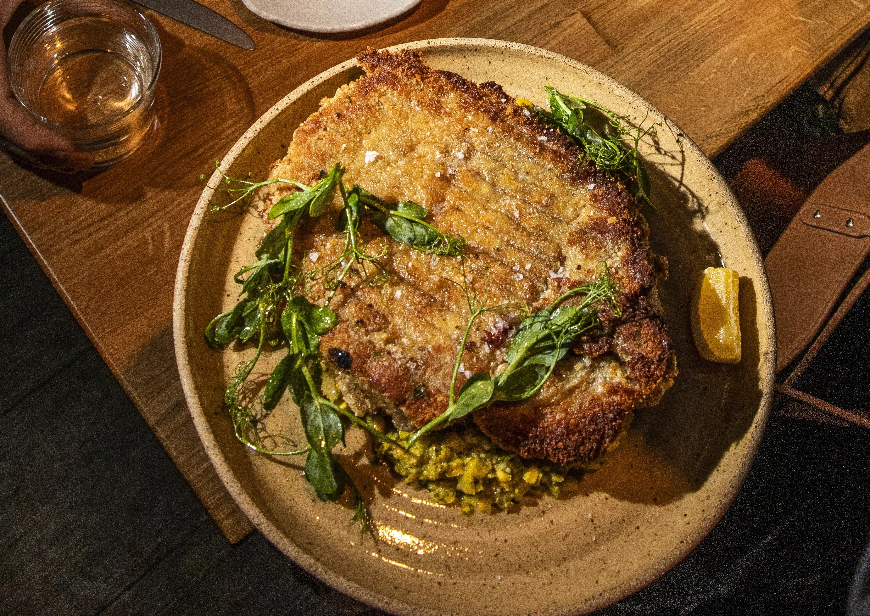 The 130-seat space has much more room than Tronco’s NYC joint, but there are enough city twists that you feel like you could be dining in the West Village. Intricate, brownstone-themed wallpaper covers some walls on the way to the bathrooms and kitchen, while others sport white subway tiles. The art shows images of NYC, and a bookcase is full of tomes by famous East Coast authors and thinkers.