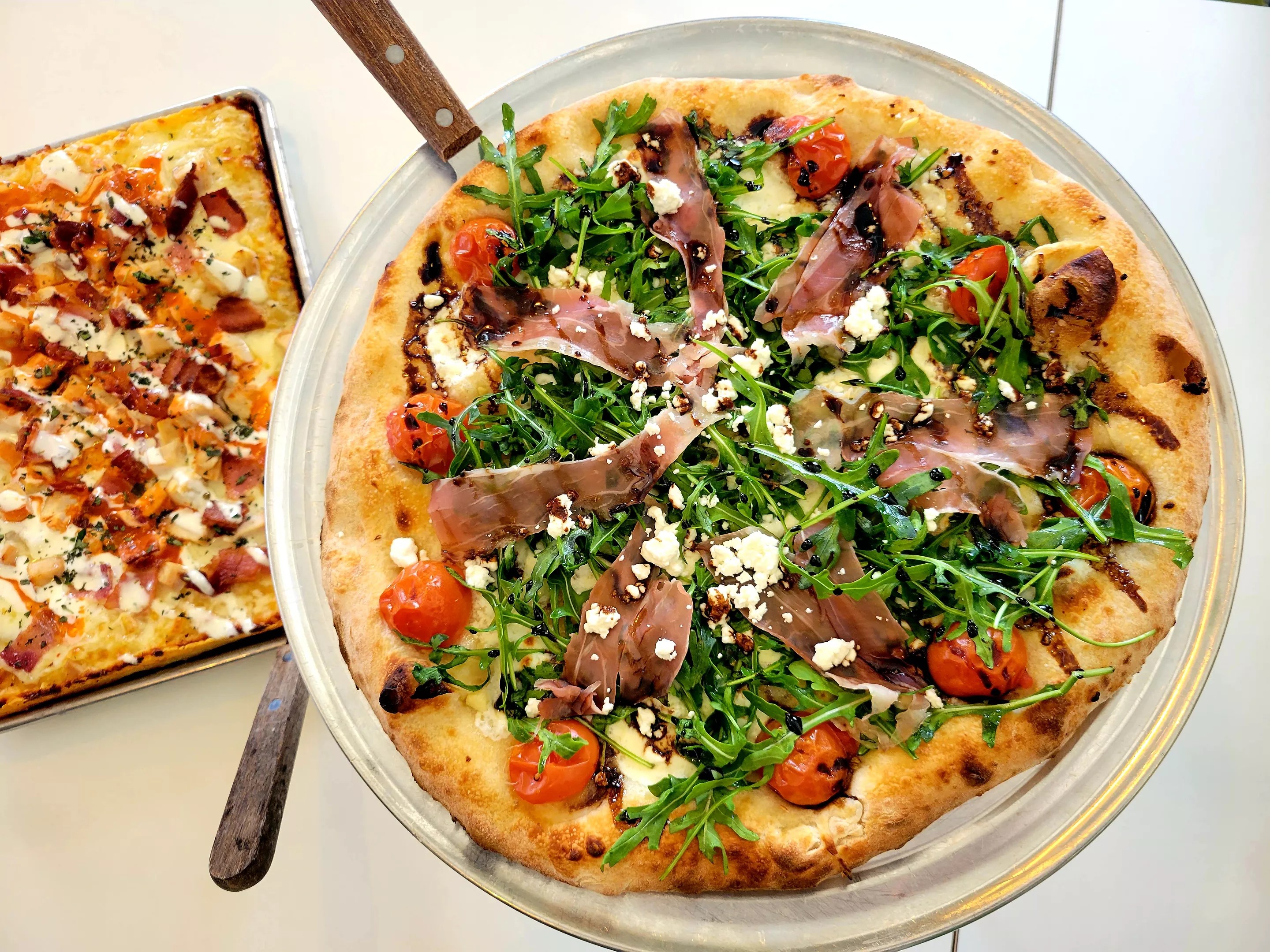 For now, the menu consists of six Detroit-style pizzas, including the aforementioned Ghost Pig as well as an equally memorable spicy pepperoni; potato-rosemary; chicken-bacon-ranch; classic margherita; and one topped with mortadella, Gouda and melted onion. Choose from two sizes: small (which serves about two people for $13-$18) and large (enough for a super-hungry duo or up to four diners for $15-$28).