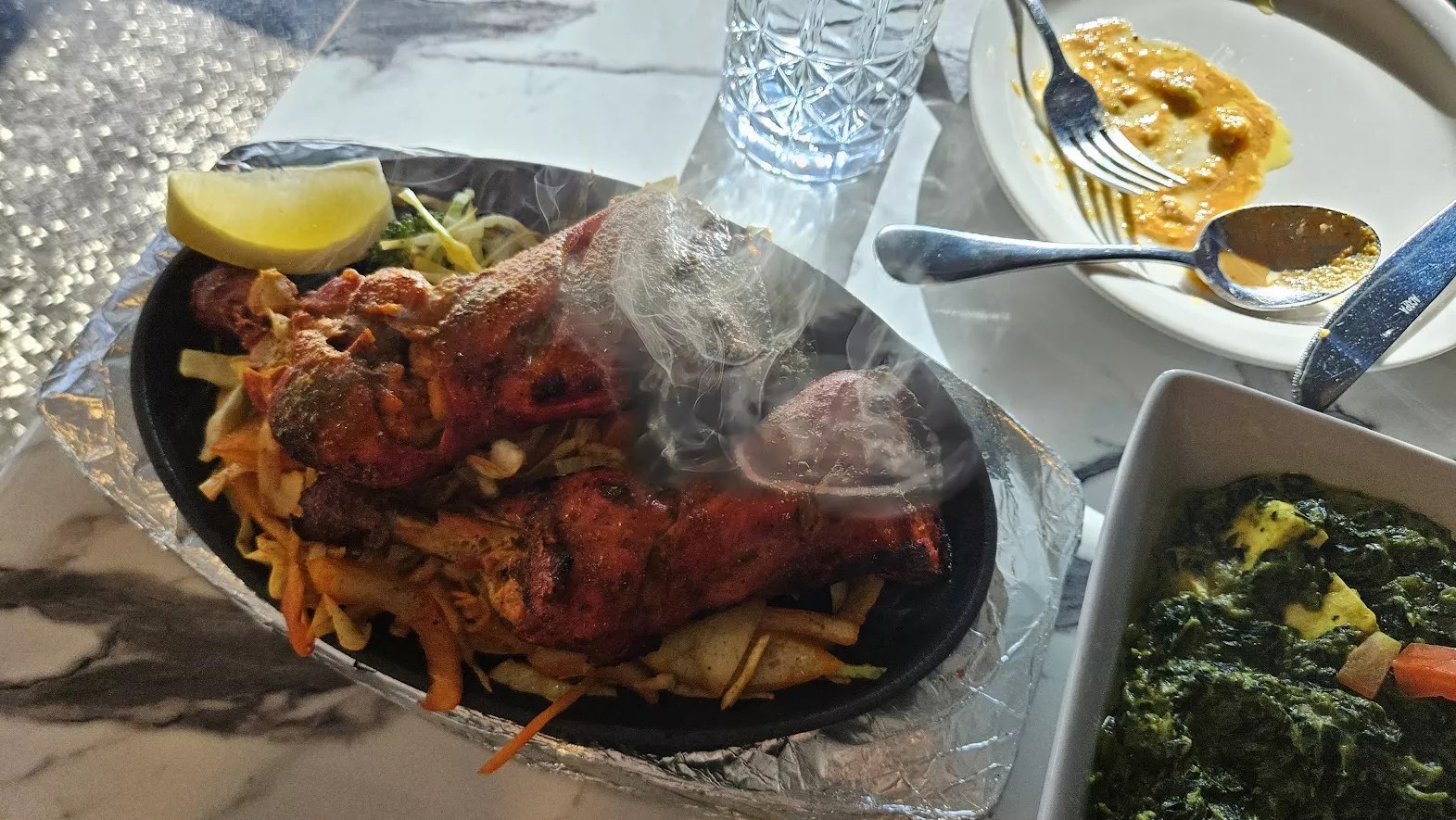 Steaming Tandoori Chicken at Gundruk Taste of Nepal and India in Lafayette.