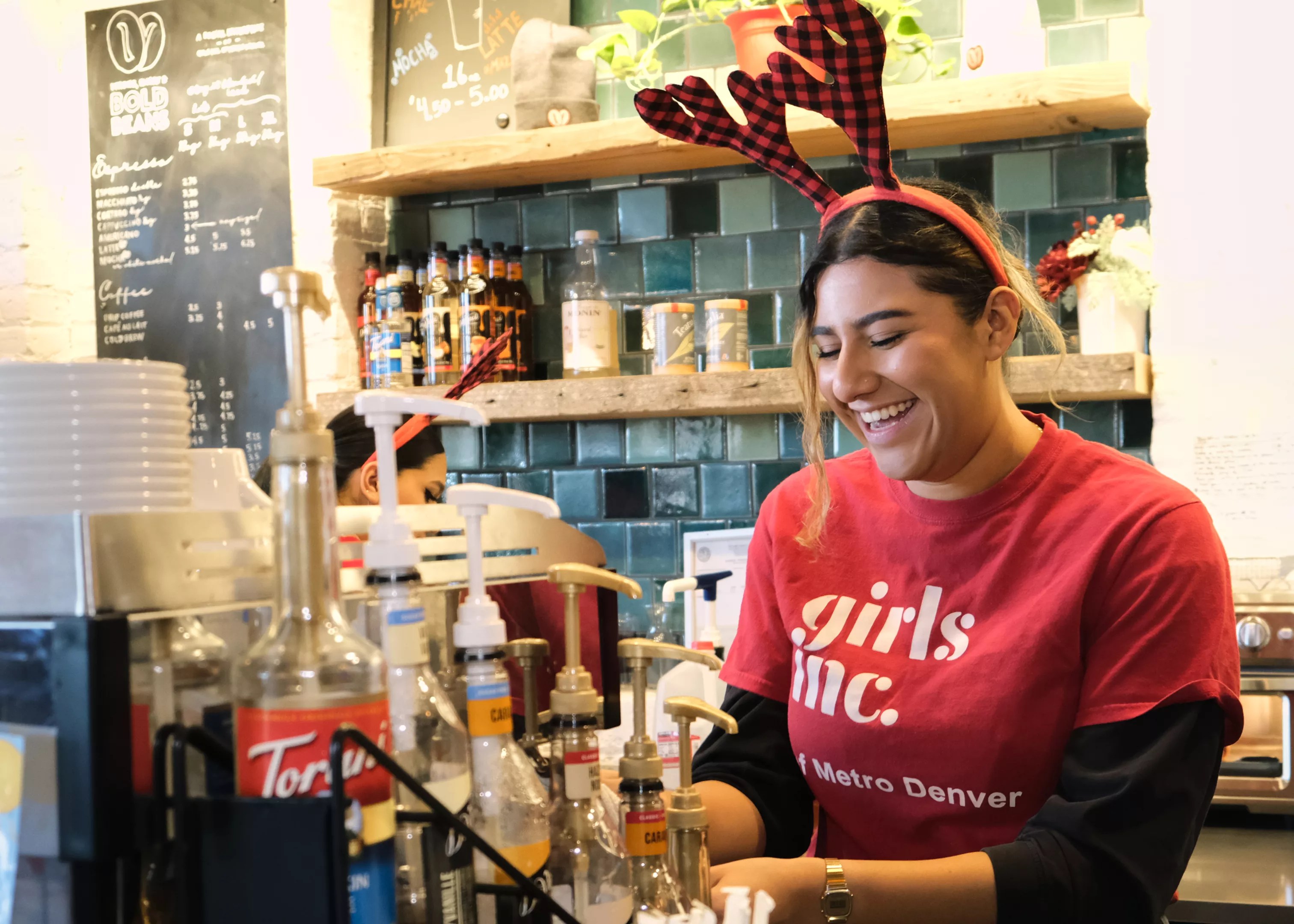 Instead of a one-off event, the girls took it further by reinvesting the profits from that summer into a coffee cart at Rodolfo “Corky” Gonzales library at West Colfax and Irving Street. Girls Inc. needed little to no persuading in supporting the venture, and quickly worked to formalize the program, and that’s how Strong, Smart & Bold Beans was born. “They learn employment and entrepreneurship working as baristas,” Garcia says. “They learn all the elements of employment and social enterprise. … When customers purchase coffee and merchandise, it all goes back to Girls Inc.”