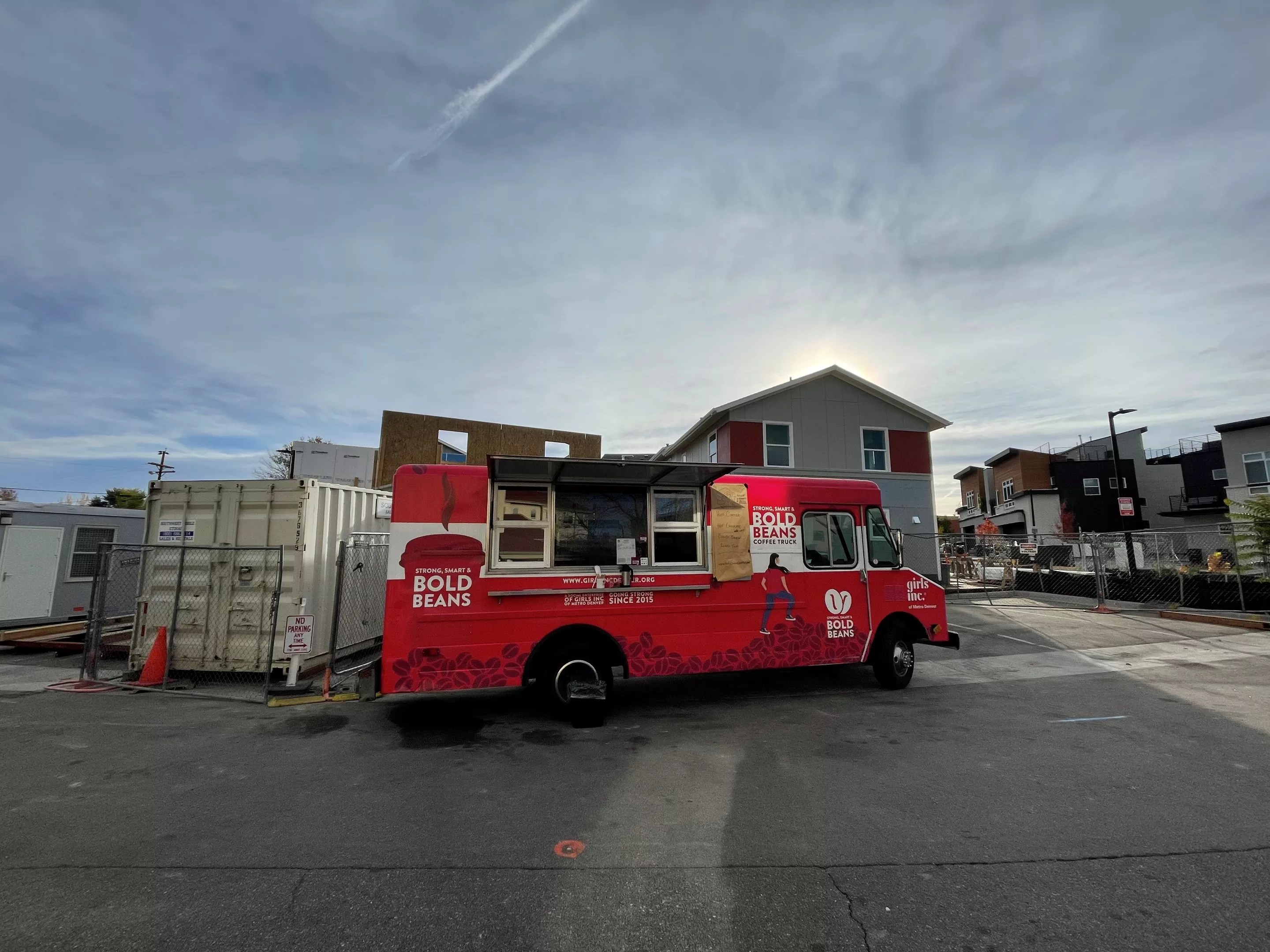 The Strong, Smart & Bold Beans coffee truck at the November 2022 Habitat for Humanity Women Build event.