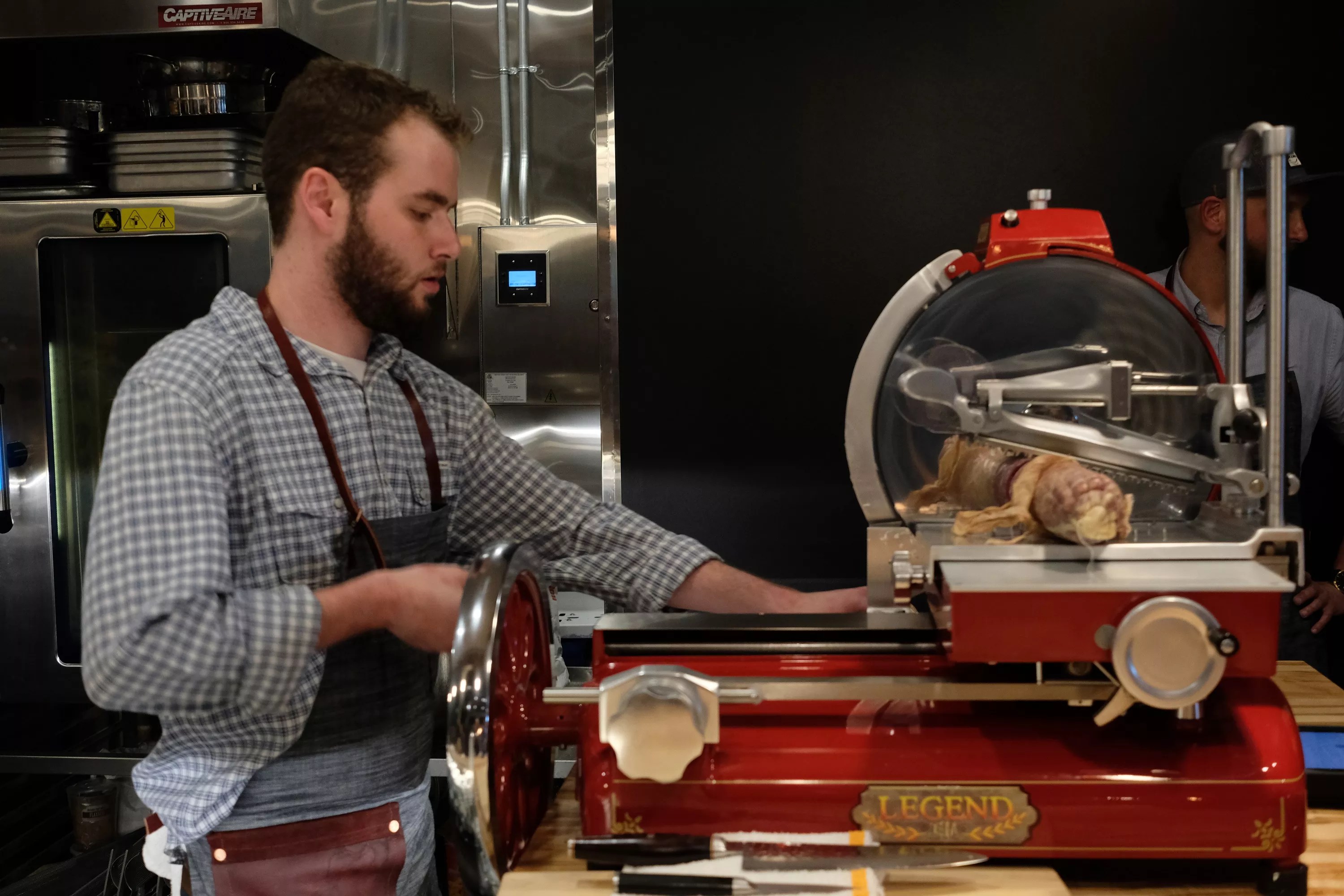 Attention to detail at Goed Zuur includes tables with an elevated shelf for meat and cheese.