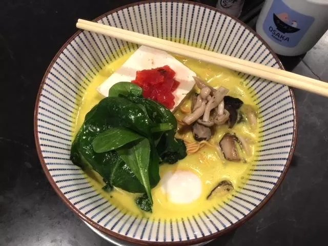 Mizu Izakaya‘s Pork Kimchi Ramen Osaka Ramen’s vegetarian version leans a little curry. Jeff Osaka