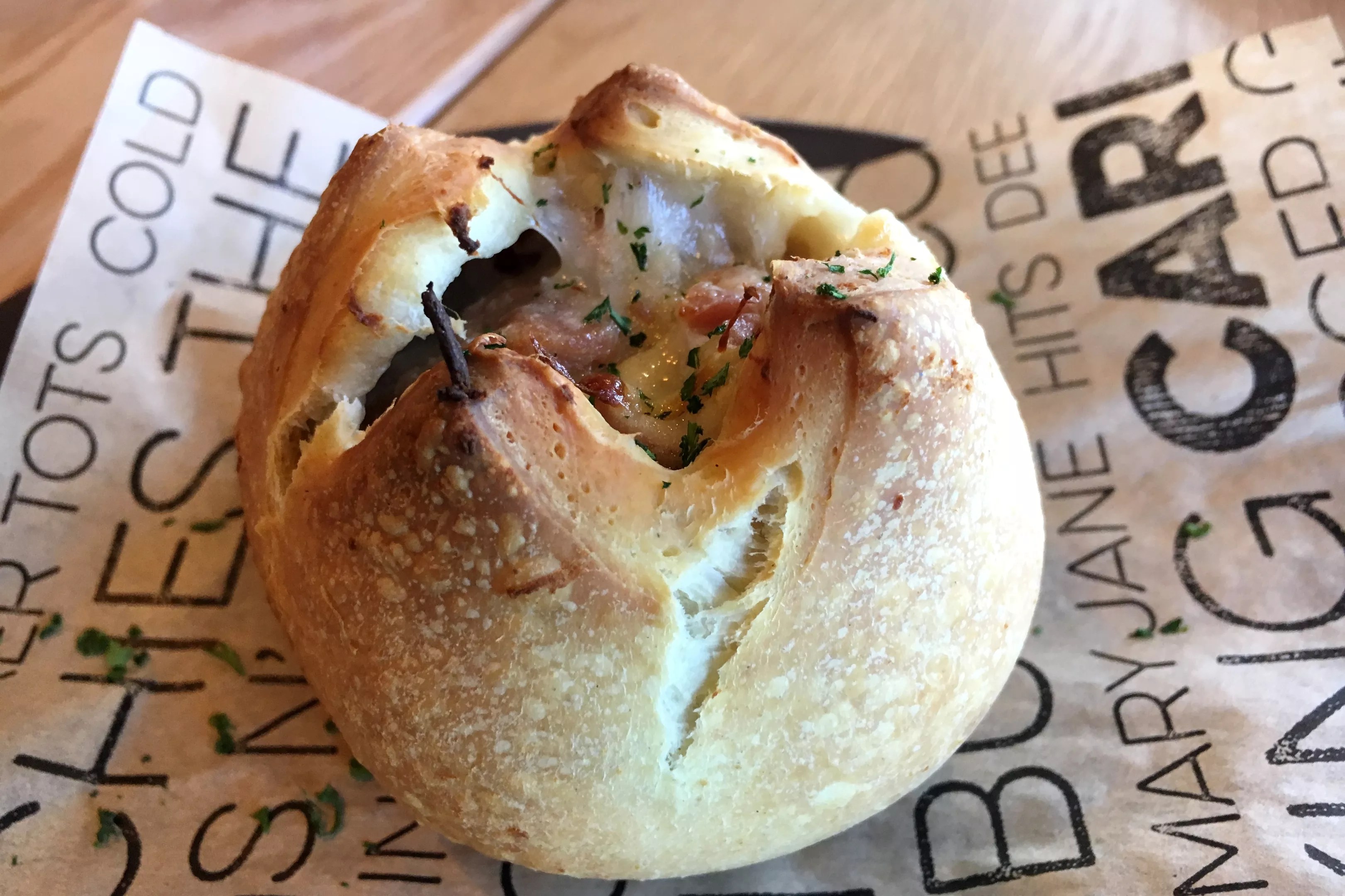 In the kitchen, chef Daniel Salvesen oversees a menu imbued with rock, hip-hop and weed references. Carbon’s Wu Tang tots, a fan favorite at the original location, make an appearance, served with Method sauce, smothered in country gravy or loaded with all the things you’d find on a steakhouse baked potato. Doobie snacks (like housemade pigs in blankets), a Rocket Man sandwich (spicy fried chicken) and Mac Daddy pasta continue the theme, but the food is no joke. All the breads, from the brioche sandwich buns to the seven-grain bread on the avocado-mushroom toast, are made from scratch, and of course, so are the doughnuts, which get a little automation in the form of a doughnut robot named The Dude — essentially a conveyor belt that ushers a dozen doughnuts every five minutes through a hot oil bath.