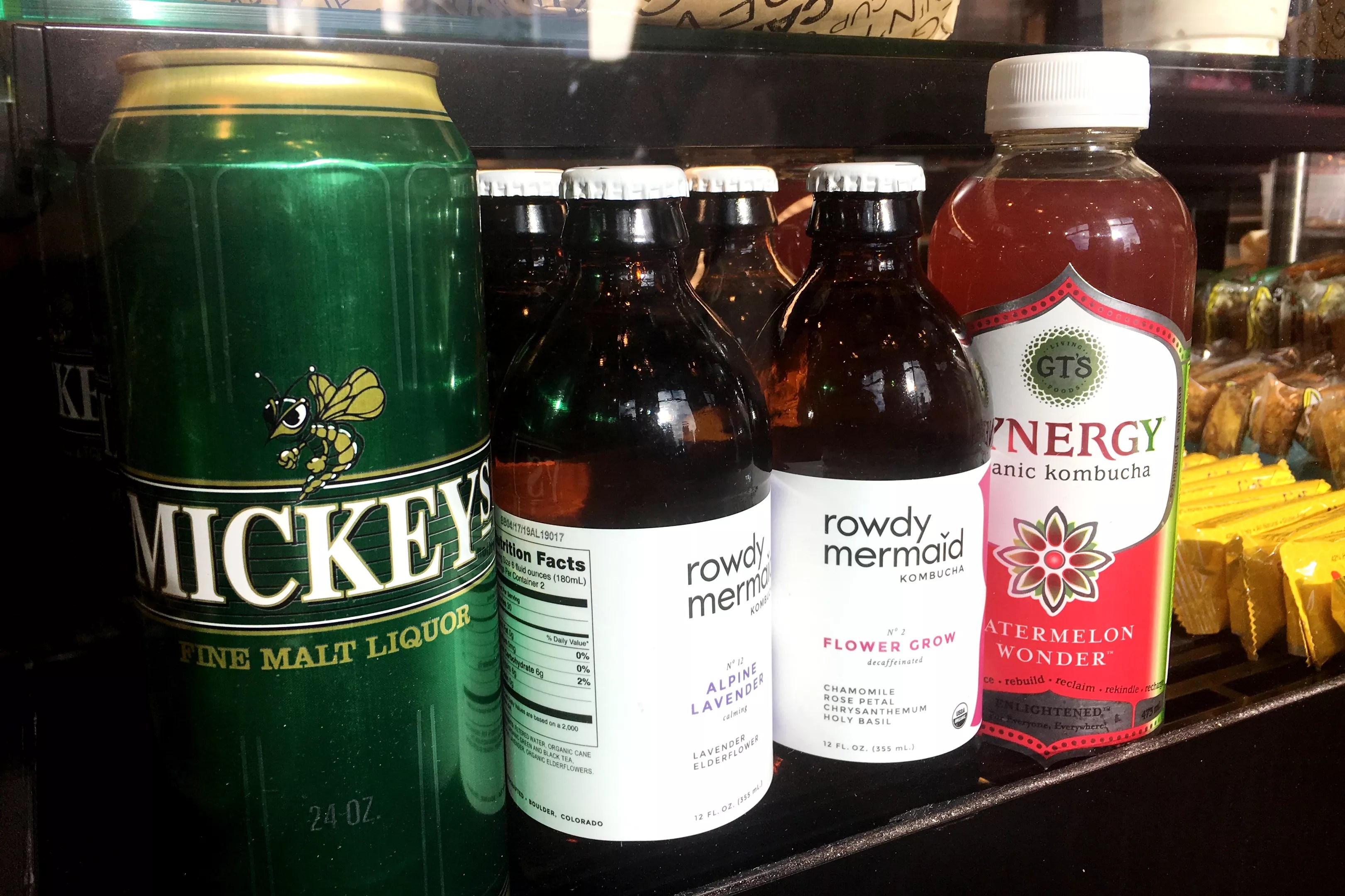 Other amusing surprises include a doughnut blonde ale made by Woods Boss Brewing next door, a combo pack that combines Mickey’s malt liquor with a dozen doughnuts (though you’ll have to finish your Mickey’s before you walk out the door), and hip-hop mad libs printed onto the sun shades on the corner windows (so you can finish the phrase “I don’t know but today seems kinda…”)