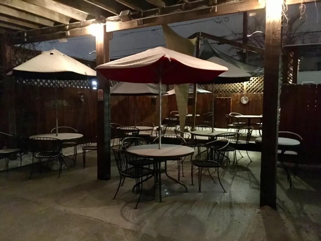 The Hanson’s patio waits patiently under the snow for patio drinking time.