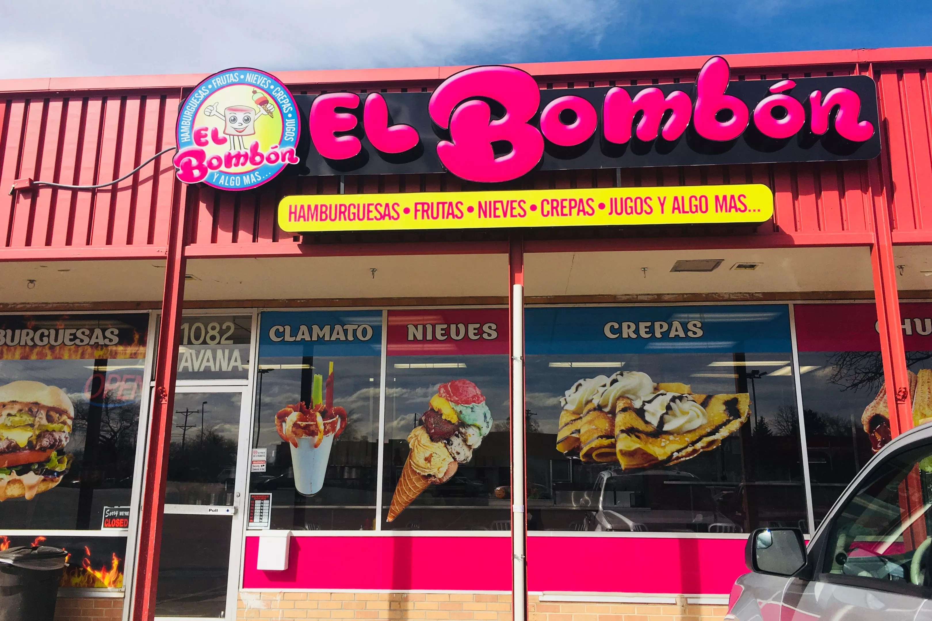 Bombón is Spanish for a sweet treat or chocolate. While that’s not the only thing served at El Bombón, a hot-pink-and-electric-blue eatery at 1082 Havana Street, confections like specialty ice cream, crepes, Mexican fruit desserts and churros are legitimate specialties worth saving room for after a diner-style meal of hamburgers and hot dogs.