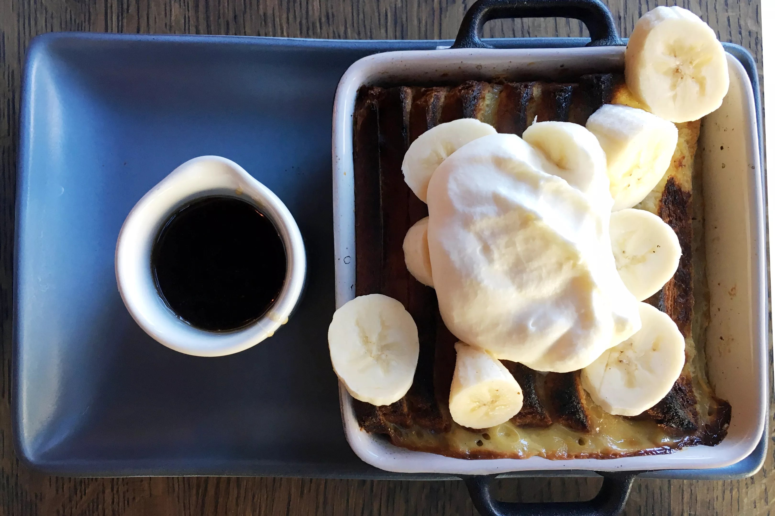 Thin-sliced French toast soaks up a caramel-rich sauce.