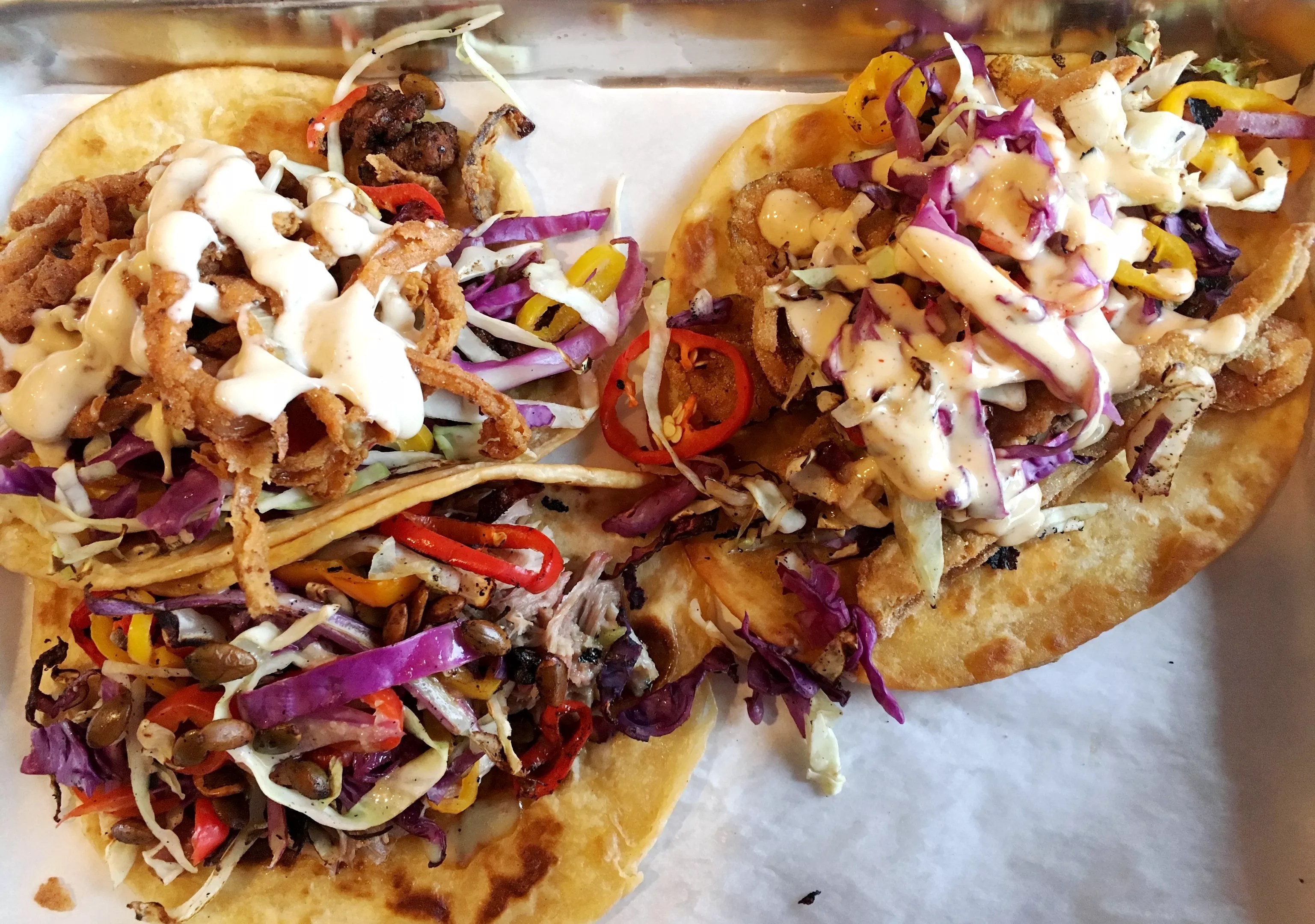 So, yeah, Huevos Tacos serves…tacos. But Stock adds that they’re not street-style tacos; they’re his restaurant’s way to offer a handheld meal with each different menu choice. All of the tacos are served on locally made flour tortillas (though corn tortillas are available on request) that have been altered in a way that’s not quite definable but nonetheless intriguing. Stock won’t give away exactly what that alteration is, but just says “There’s definitely a little magic going on there.”