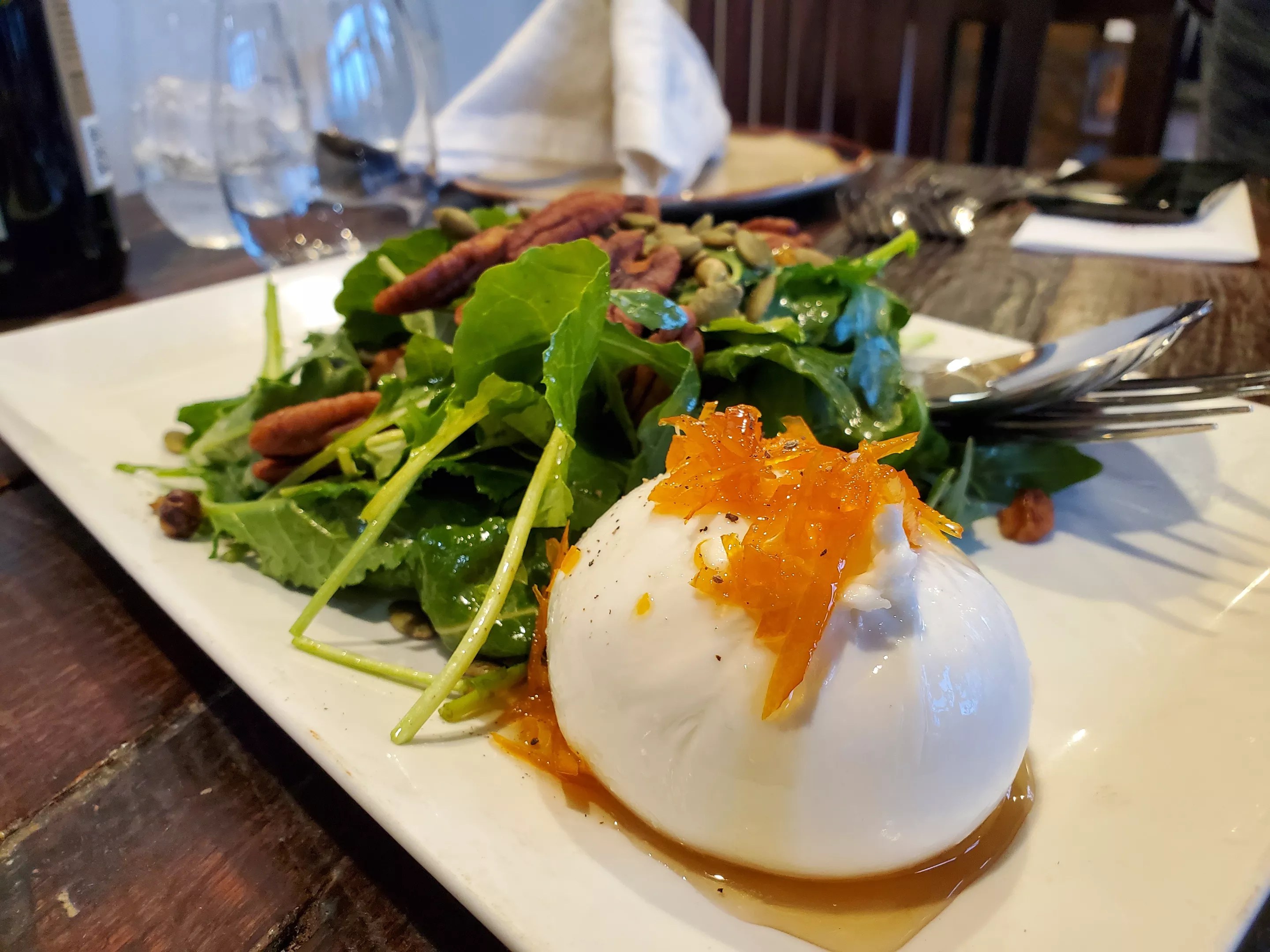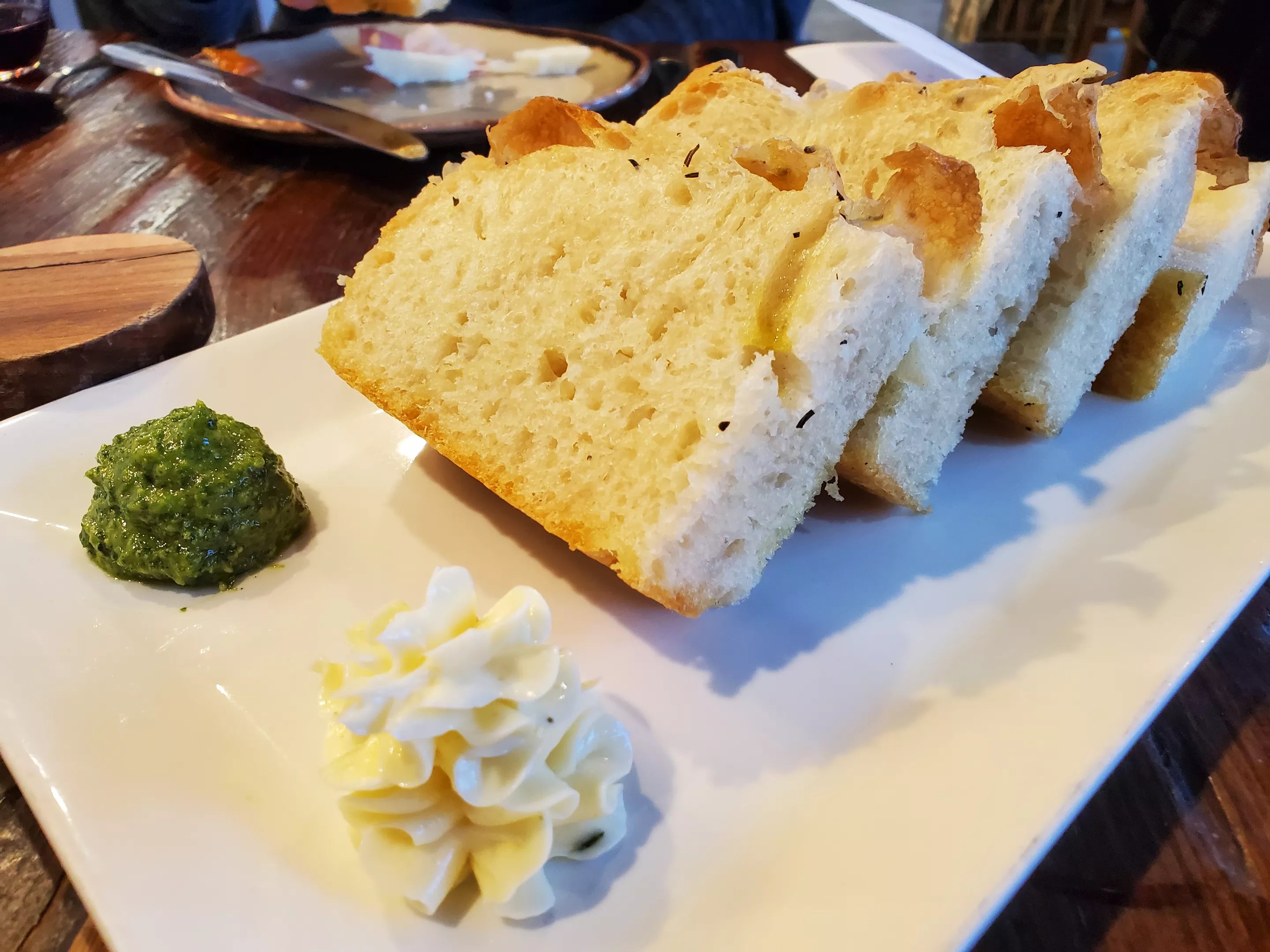 Along with a platter of thinly sliced meat and chunks of nutty cheese, we kicked off our dining experience with thick slices of light and airy focaccia, served with carrot-top pesto and wild-ramp butter ($12). The staff was excited to get feedback after many rounds of recipe testing, and their efforts paid off big time.