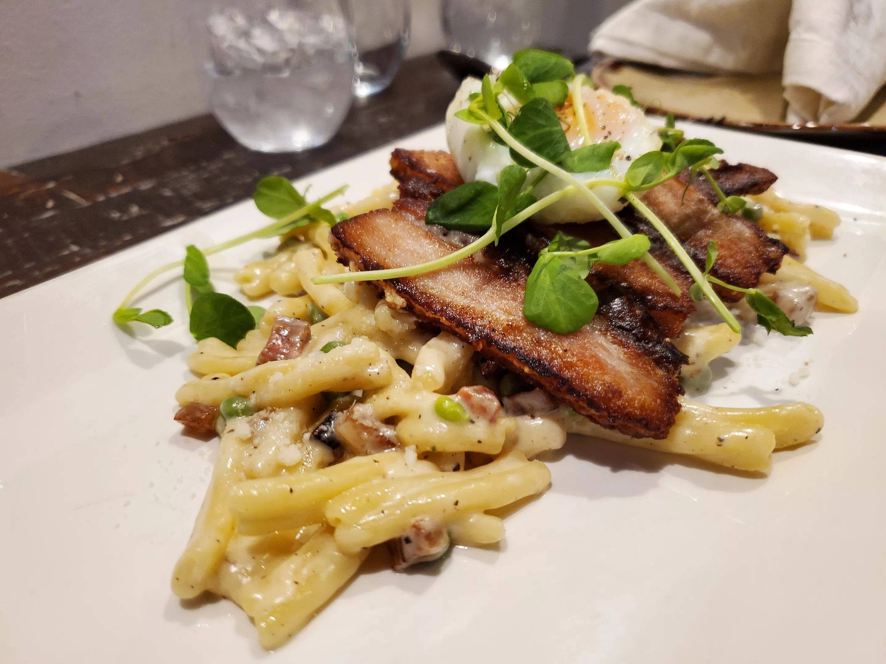 The real fun, though, is in the way Miner incorporates cured meats throughout his dishes, including the asparagus topped with citrus slices, everything seasoning and a dollop of ricotta mixed with lomo, or cured pork tenderloin ($16). The carbonara ($23) is made with guanciale, an Italian cured meat, and a piece of crispy pork belly on top makes it even more indulgent.