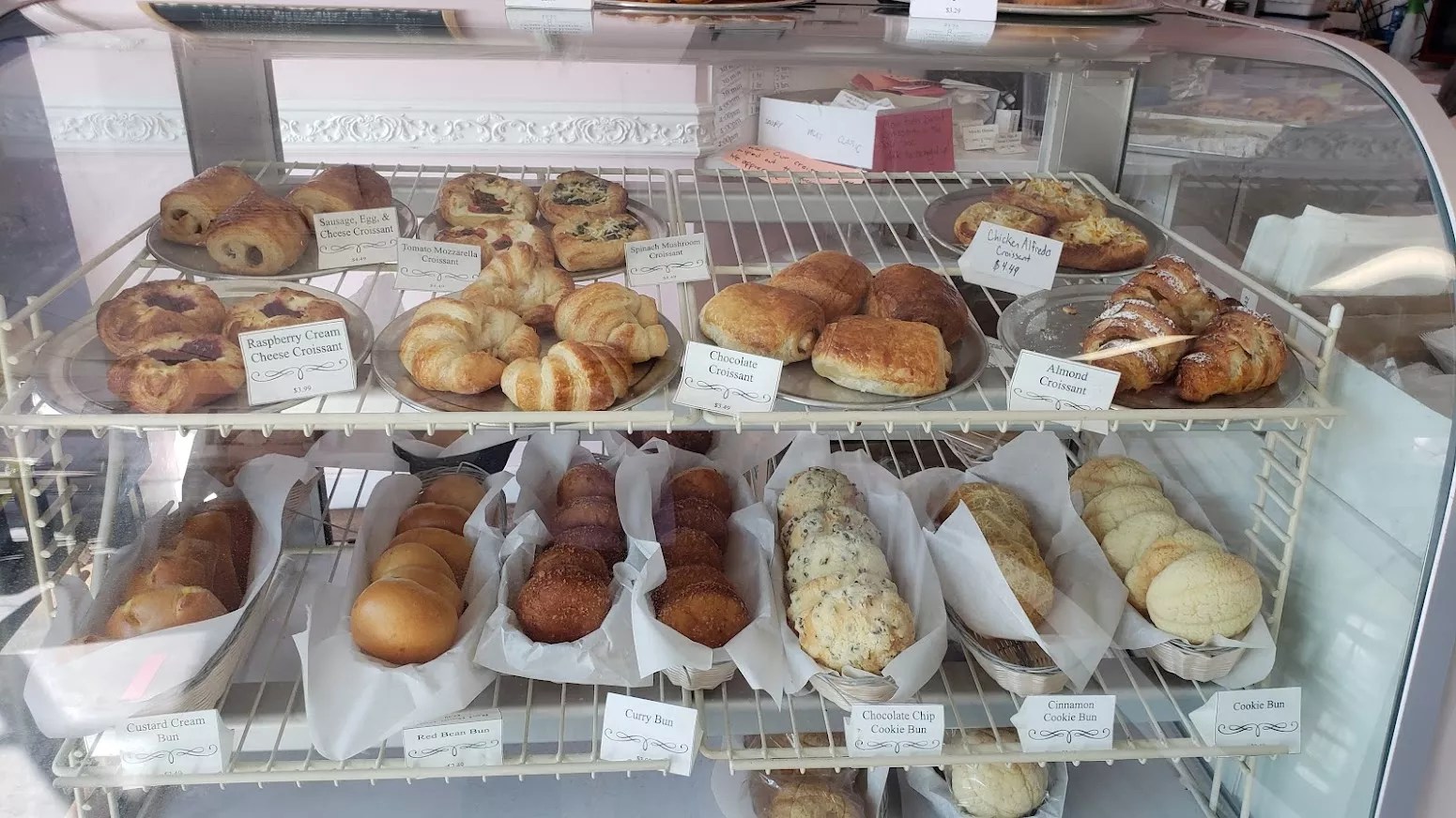 There, she sells cream pans as well as sweet bean paste-filled buns, various croissants and tarts, her artistic cakes and fluffy Japanese cheesecakes, and some savory breads including curry-filled buns and Chinese-style pork buns. She also sells shokupan, Japanese white bread that’s soft and sweet and so much more than Wonder Bread could ever aspire to be.