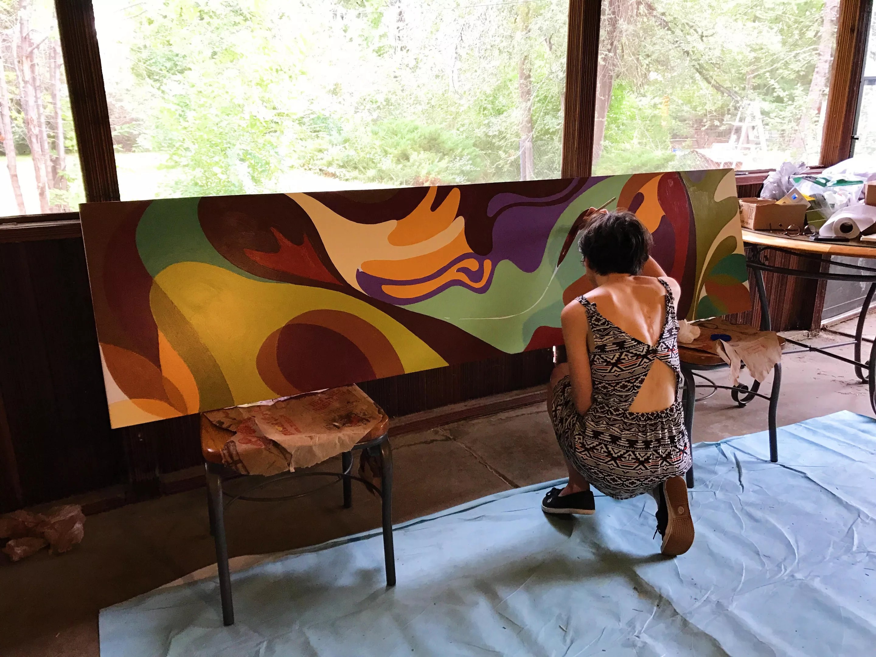 Artist Erika Deoudes works on a panel for Joe Maxx.