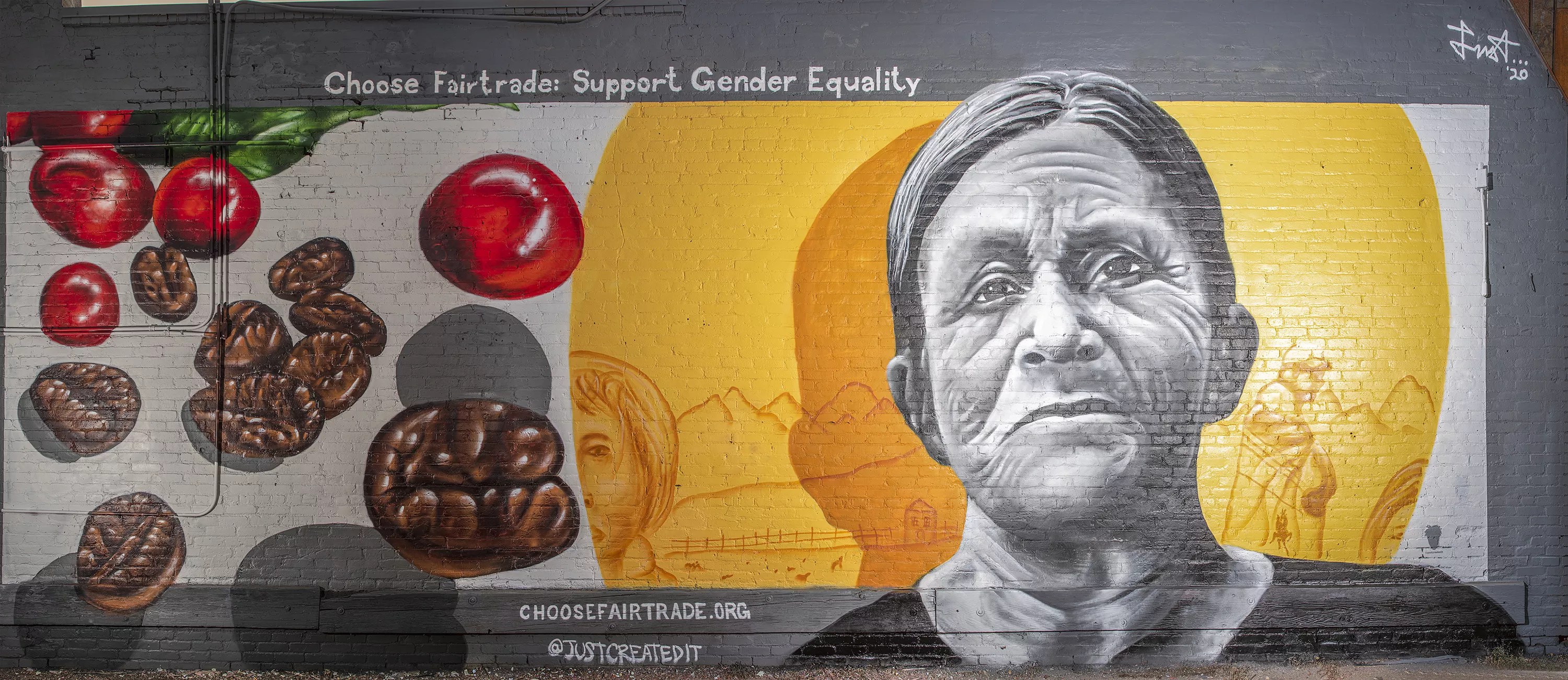 But for Overly, these past thirty years of working with Fairtrade-certified co-ops has created long-lasting relationships with growers and a reputation for selling good beans. To honor that legacy, Kaladi Coffee Roasters was chosen to participate in Fairtrade America’s “Choose Fairtrade: Choose the World You Want” mural project.