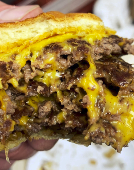 The burger will be available as a double (the standard), triple or quad, topped with American cheese, sautéed onions and pickles. “It’s not super-heavy. It’s got crispy edges on the sides, but it’s juicy and cheesy inside,” says Renshaw, who adds that the real kicker is the sauce: “We’re using our tangy gold sauce from King of Wings, and it’s just so good on there.”
