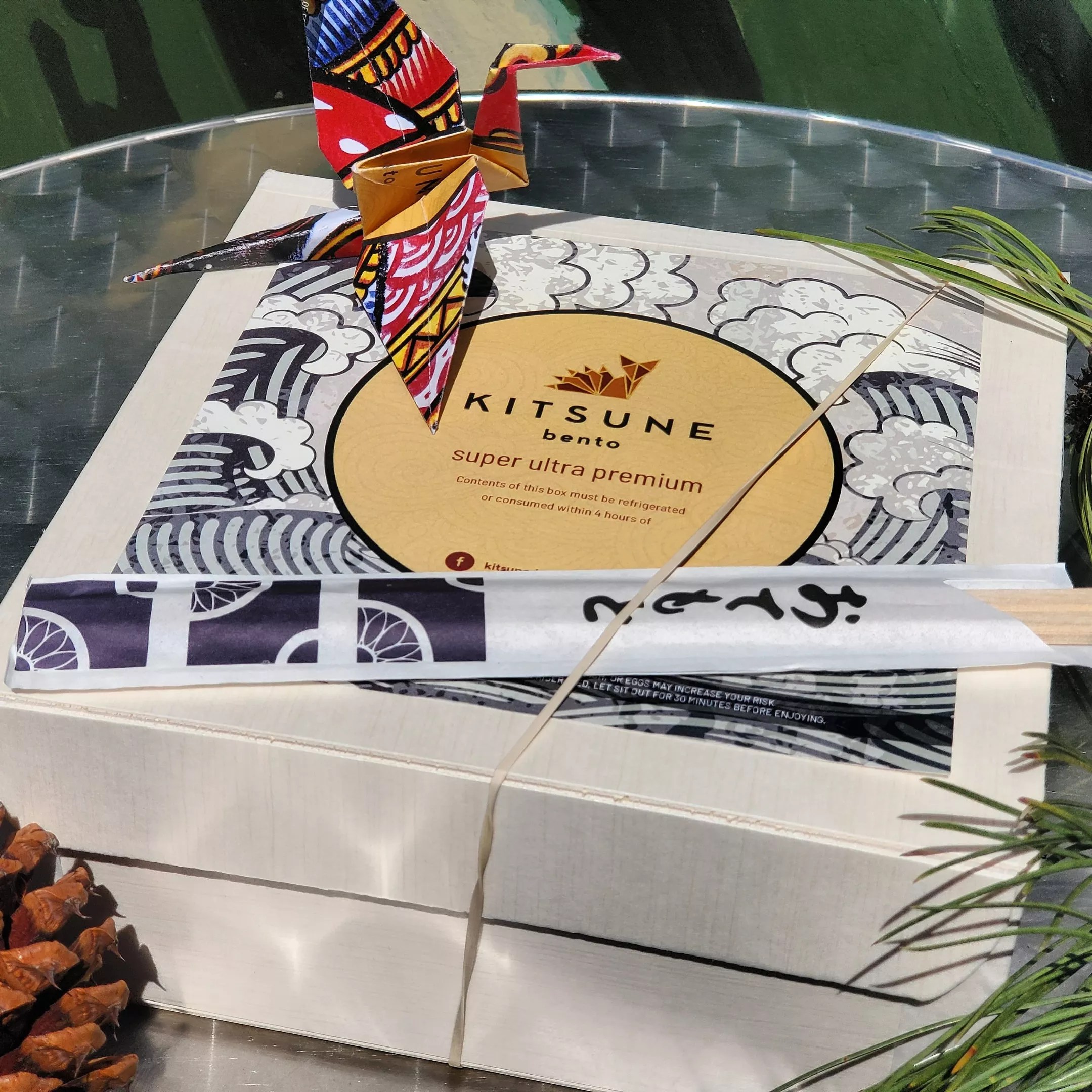 Kitsune’s logo is an origami fox, and Eng encourages customers to try their own hand at origami by removing the paper label on their compostable bento boxes. He’s even running an origami contest to see who can come up with the best design.