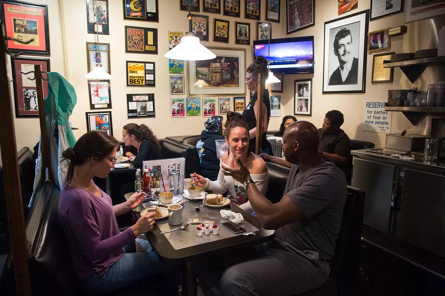 The Satire Lounge and Pete’s Kitchen remain favorites with Denver’s young and hip crowd, as well as with longtime Colfax denizens, all of whom plow through stacks of pancakes, piles of fries and pots of cheap coffee from dawn until well past last call.