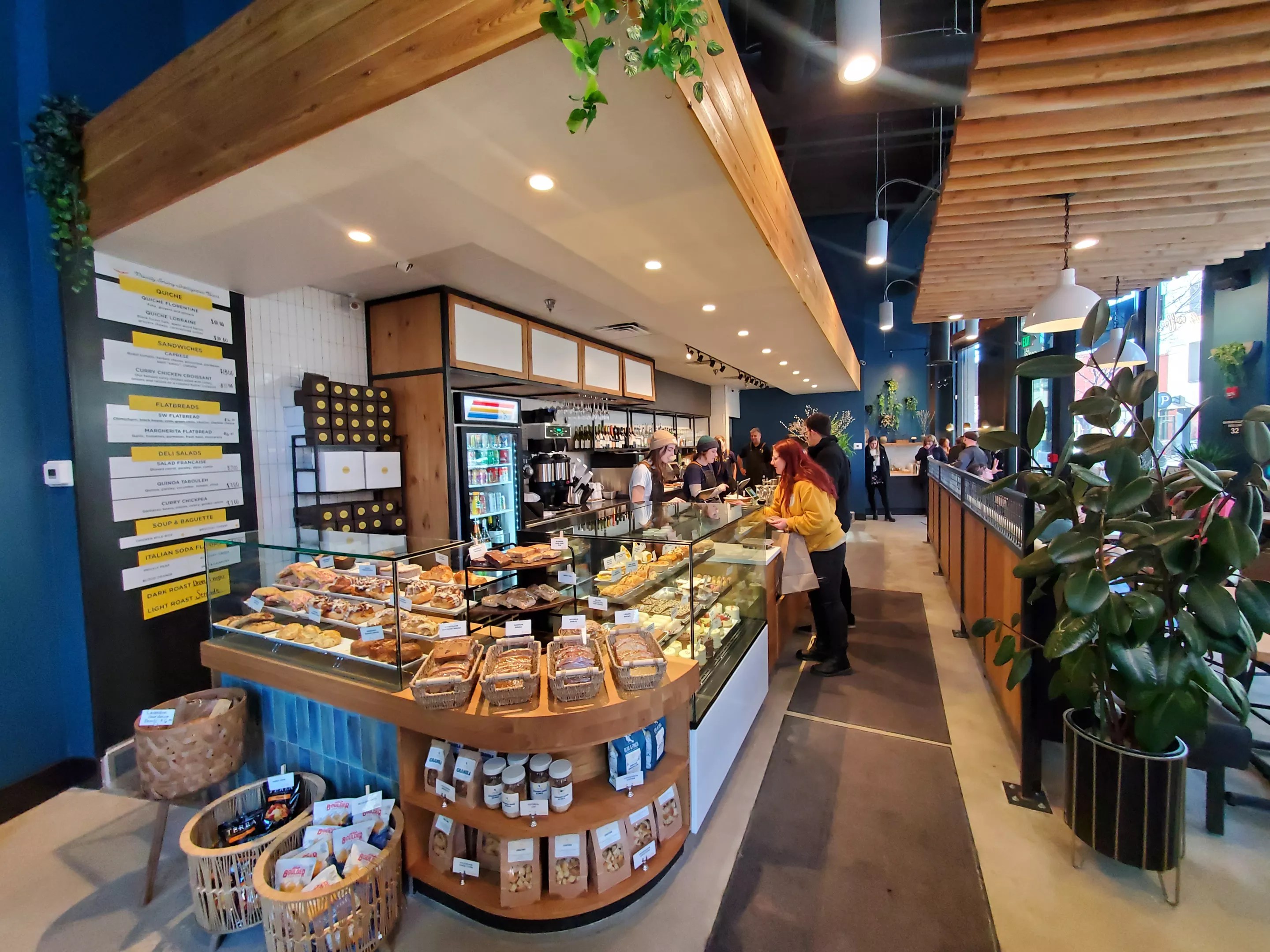 There’s a refrigerated grab-and-go section — and in another full-circle career moment, Nguyen adds that those items will soon also be available at Denver International Airport. If you want to settle in for a bit longer, though, there’s a menu board of items that are heated up in-house, including rotating flatbreads (the Southwest flavor is one of Nguyen’s current favorites). You’ll also find seasonal salads and sandwiches, all priced affordably, like the hearty portion of curry chickpeas served with a City Bakery baguette for just $7.