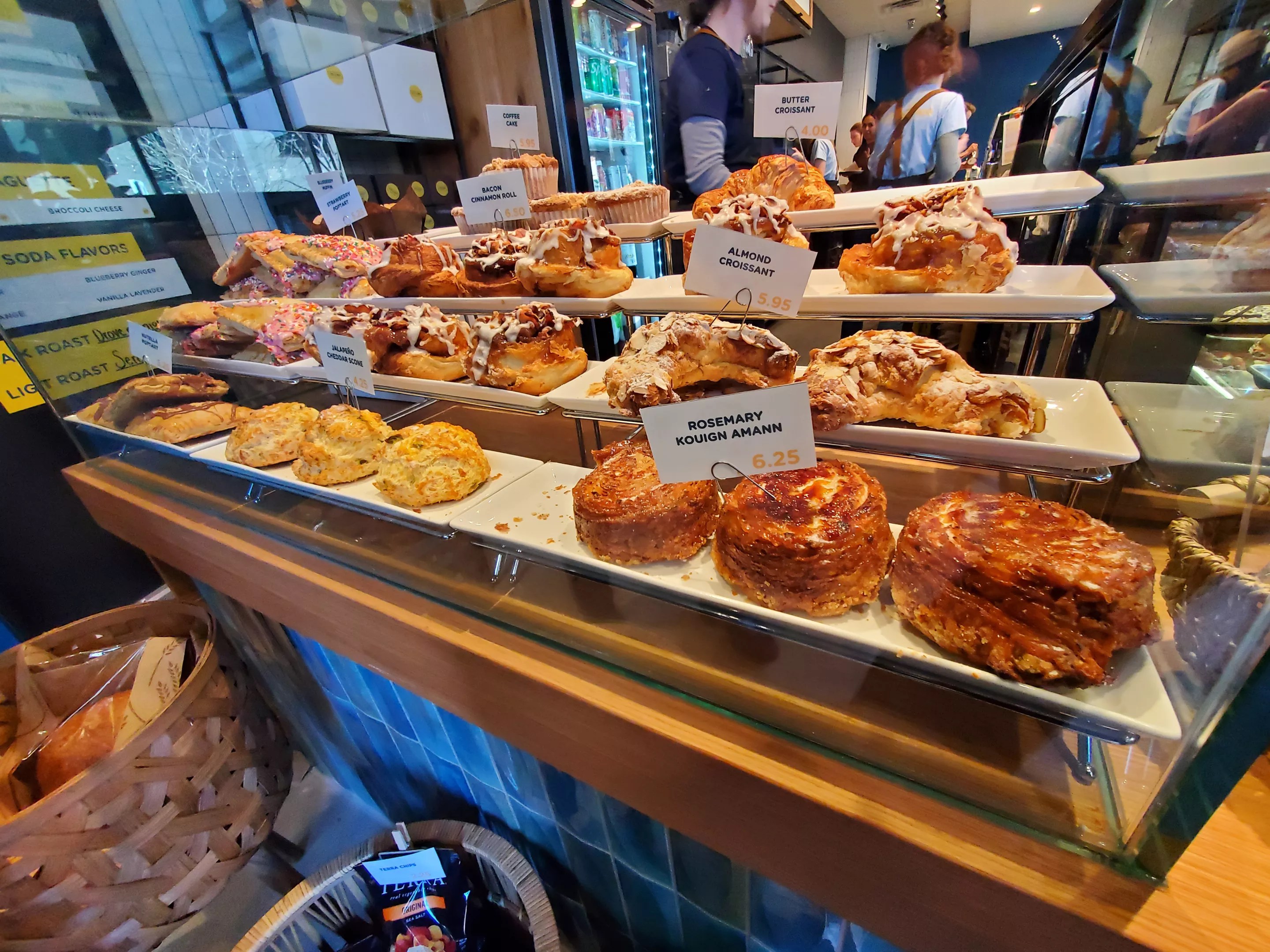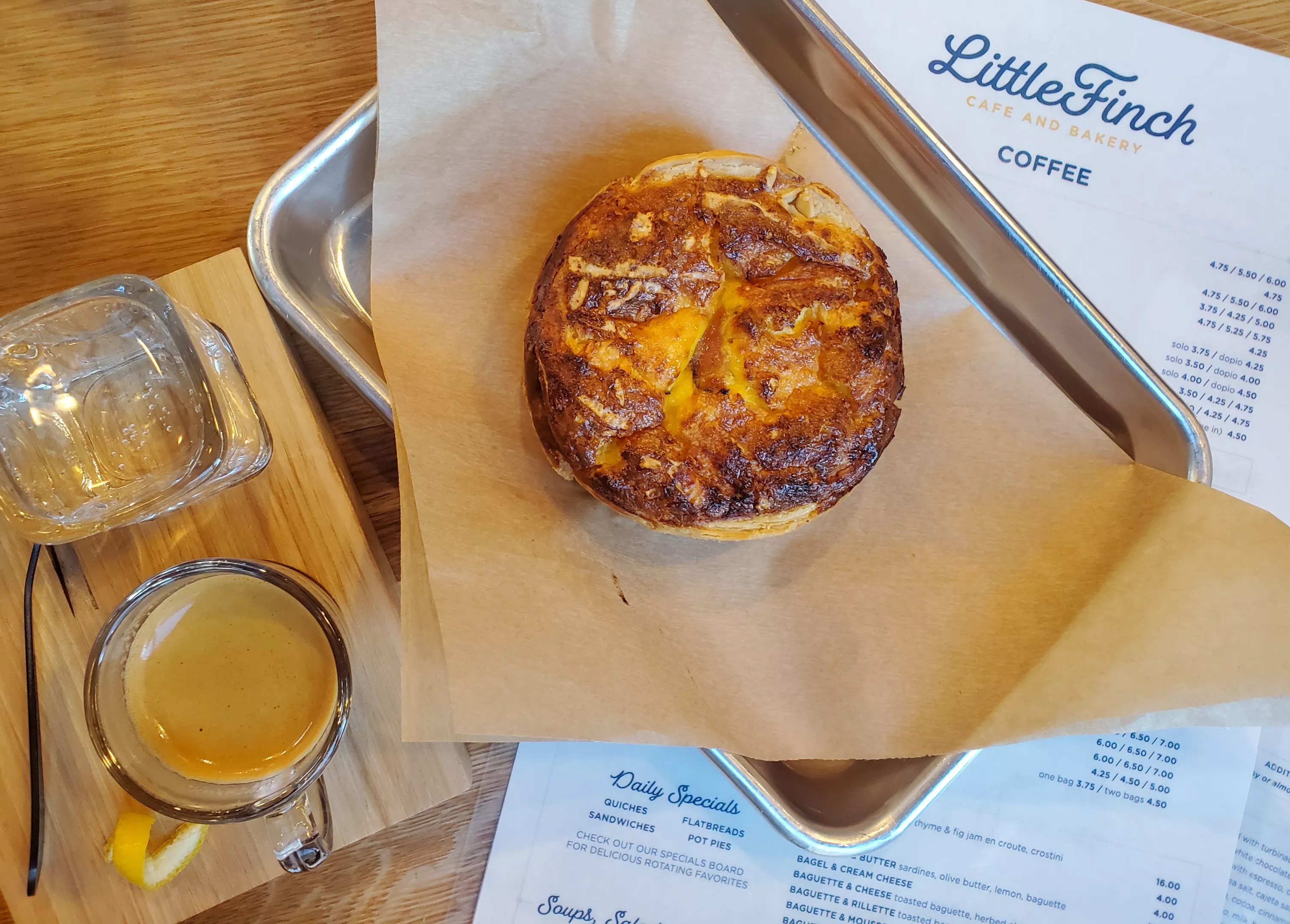 Many of the pastries at Little Finch are made exclusively for the concept, including savory Danishes such as the croque madame that’s bursting with cheese, ham and a perfectly runny egg. Both sweet and savory cravings can be fulfilled with personal-sized quiches and cakes, along with bacon cinnamon rolls and giant OMG S’mores.