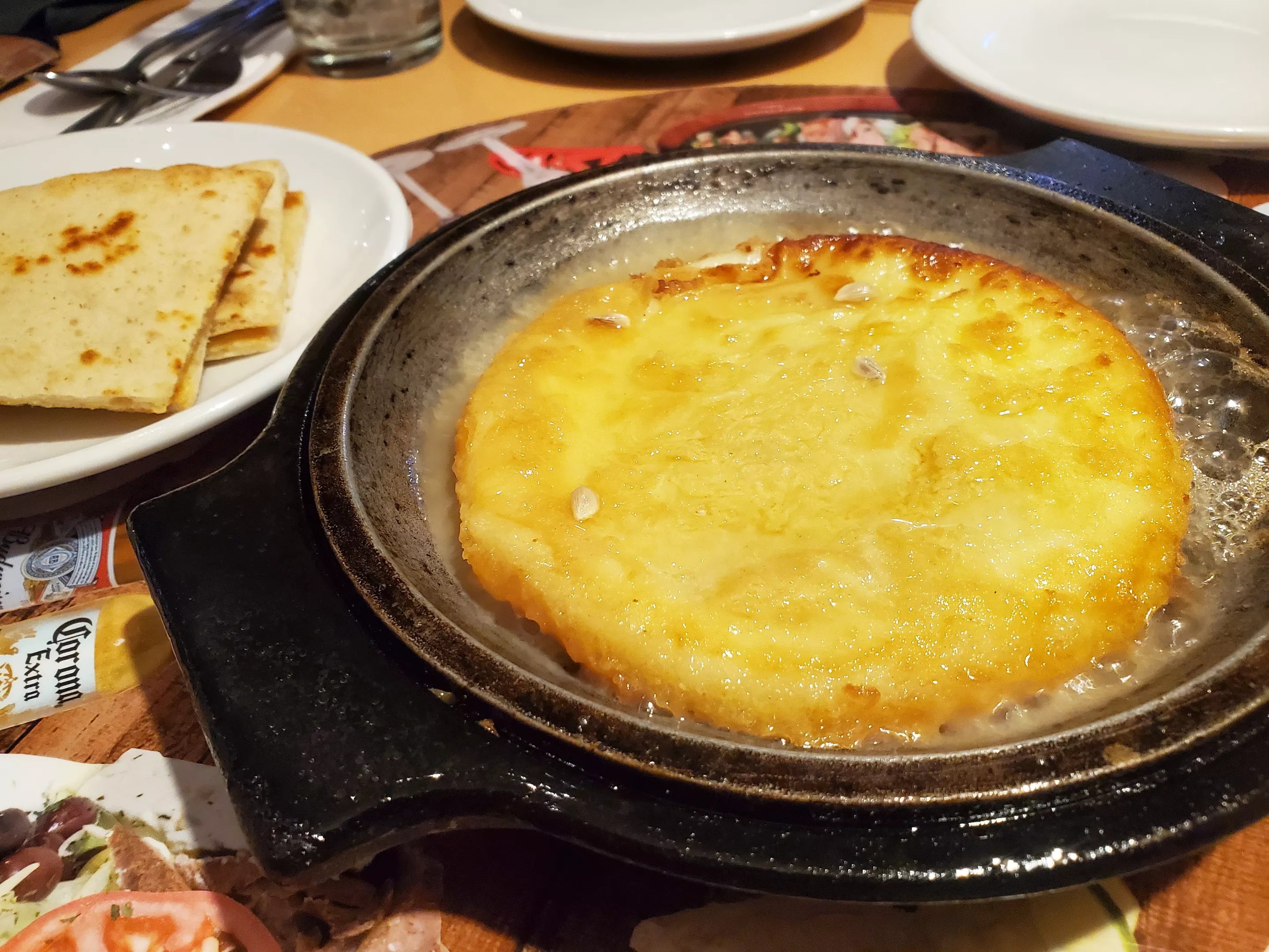 What you’re eating: Flaming saganaki ($12.95). Listed on the menu under the appetizers section as simply saganaki, it’s described as “kefalotyri cheese dipped in batter and fried golden to a crisp” – but that’s not exactly accurate.