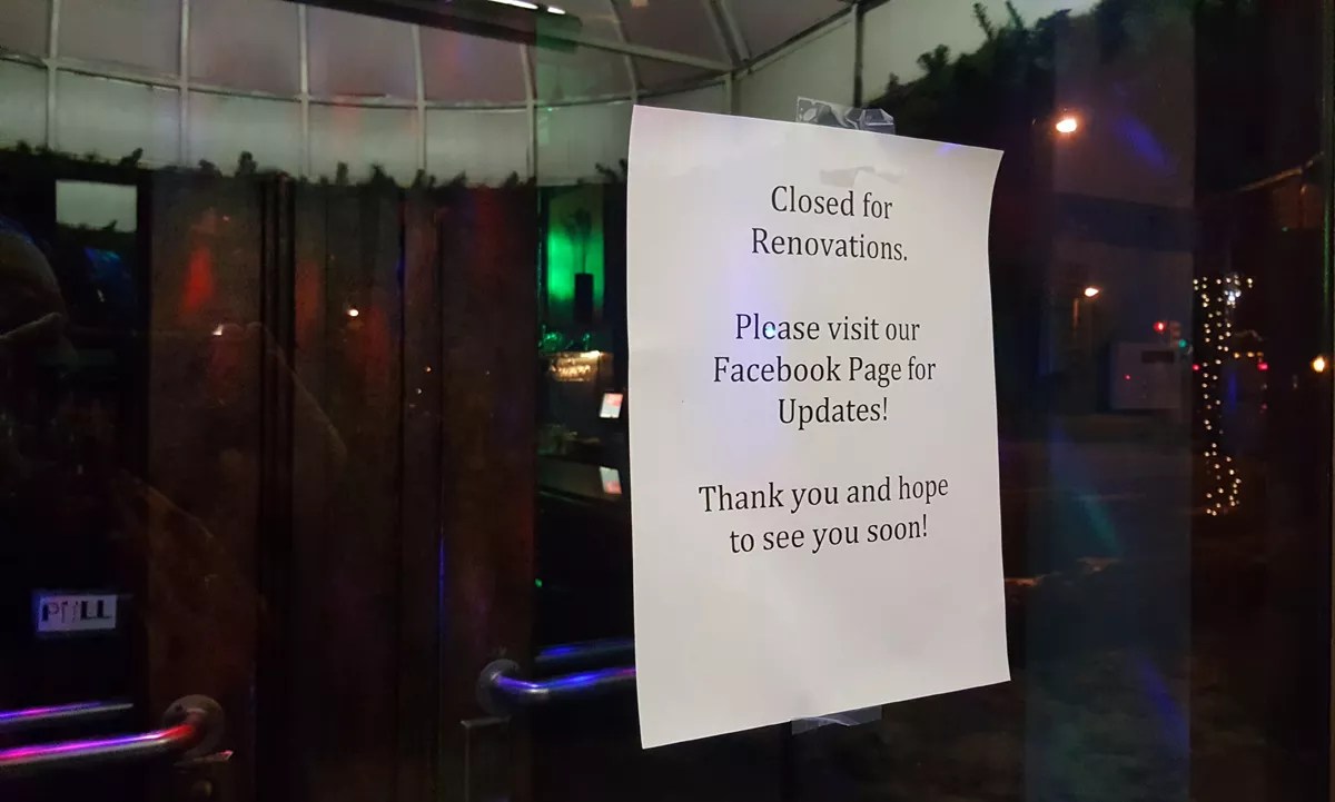 Yesterday the restaurant was still decorated for the holidays but was dark, with this optimistic sign taped to the door: “Closed for Renovations. Please visit our Facebook Page for Updates! Thank you and hope to see you soon!”