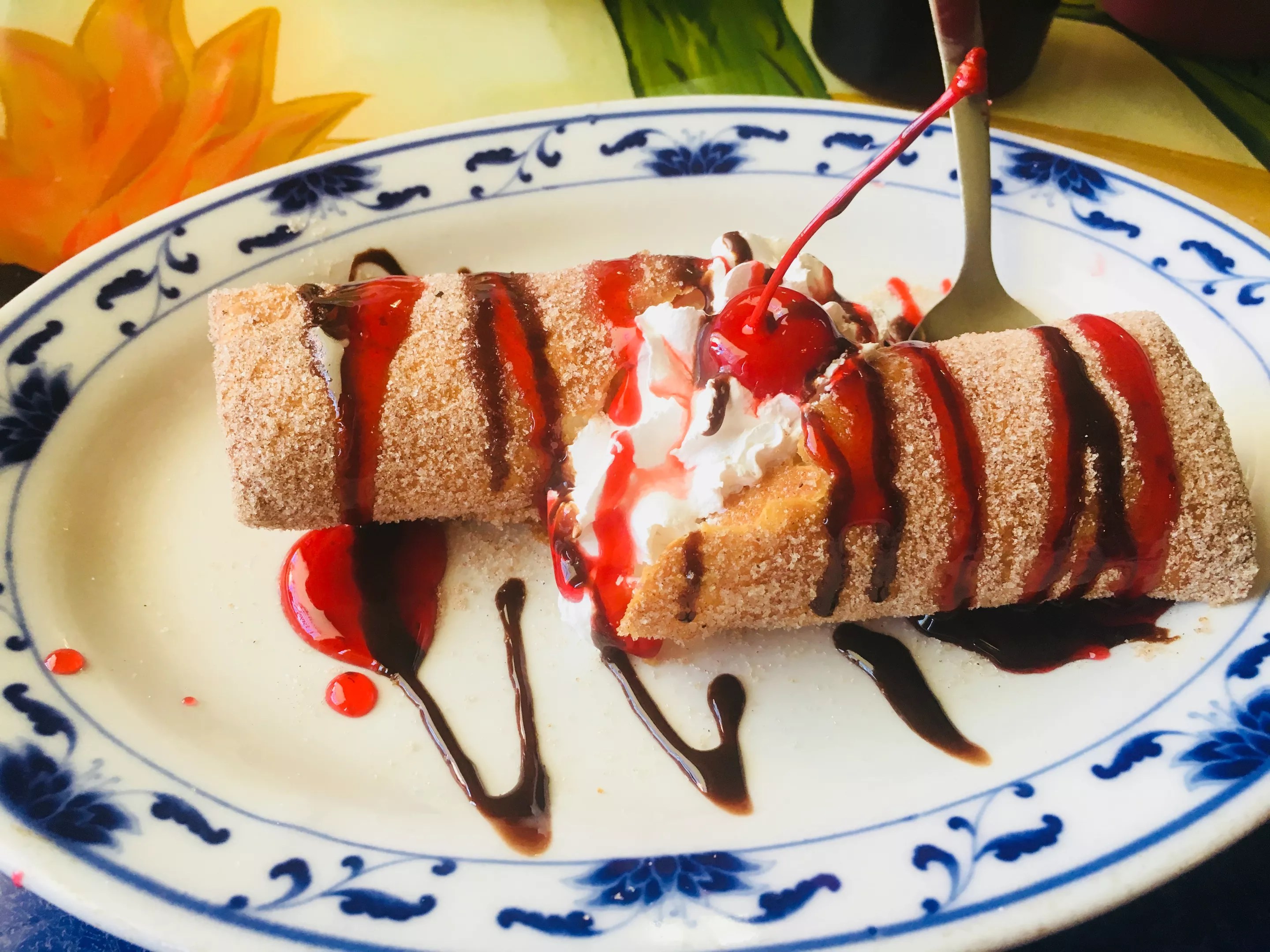 If you do decide to go spicy, a good way to quench the fire afterward is with a unique dessert called a xango. Often premade, the xango combines several Mexican confections in one, with a fried-dough exterior that comes in somewhere between a sopaipilla and a chimichanga, a cheesecake-style filling with vanilla flavor like flan, and a cinnamon-sugar coating like a churro. Chocolate and strawberry drizzles and a neon-red cherry add to the sweetness. A note of caution: You’ll have more trouble sliding out of your booth after a filling xango than you did getting in.