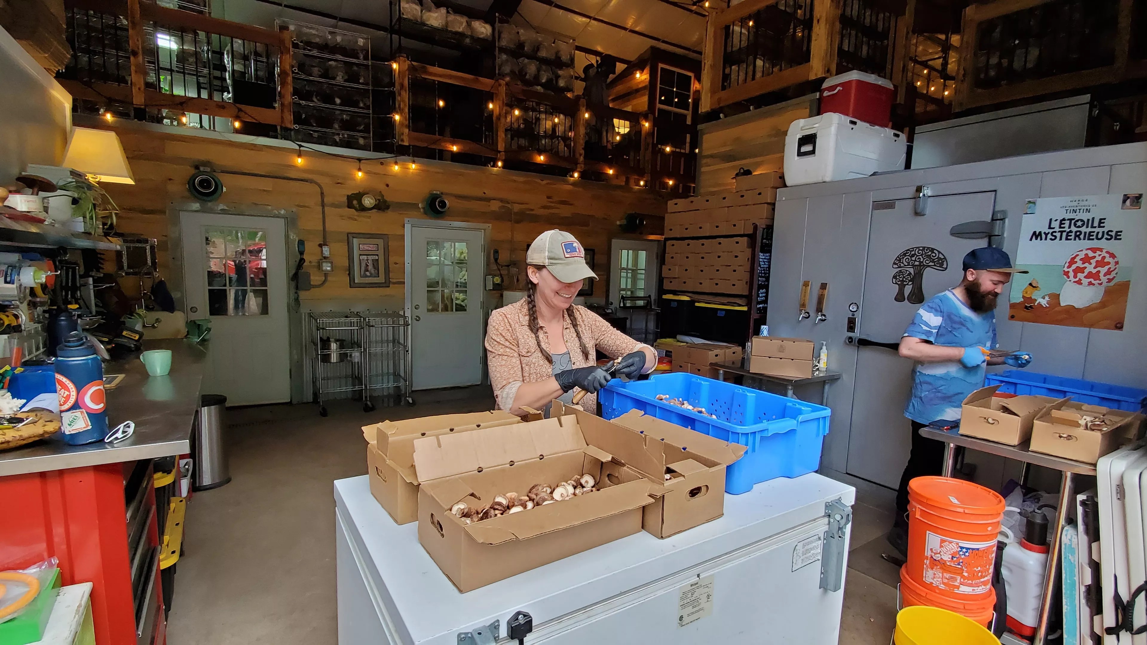 Liz Nail processes shiitakes at her mushroom farm, Mile High Fungi.