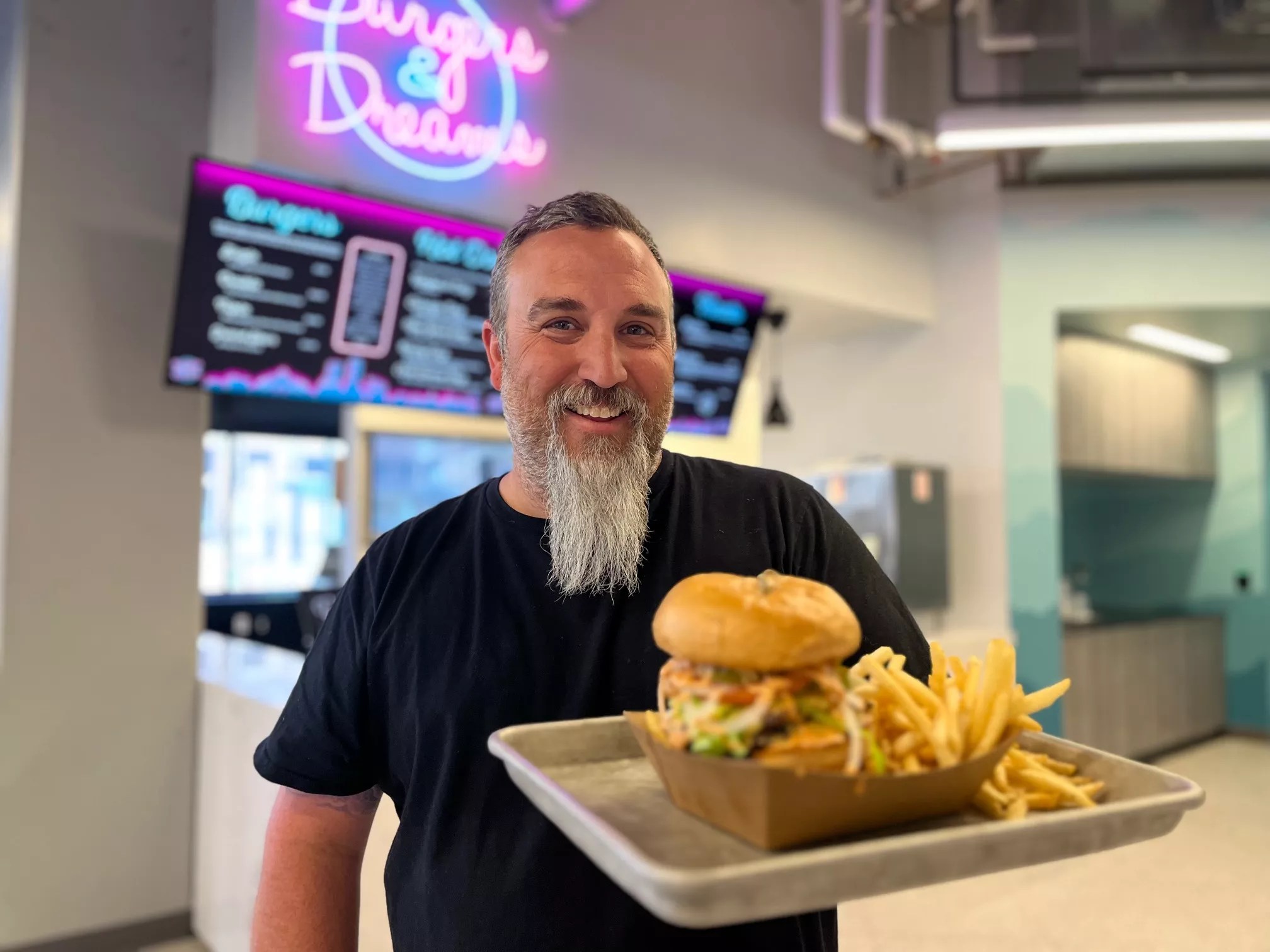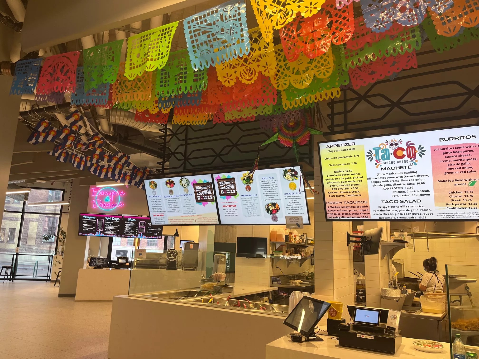Burgers and Dreams opened last week and replaced Chicago’s Original Italian Beef. It serves a menu inspired by classic 1950s burger stands. Patties here are cooked smashburger style and can be paired with fries, hot dogs, shakes and sundaes served in small plastic Rockies hats.