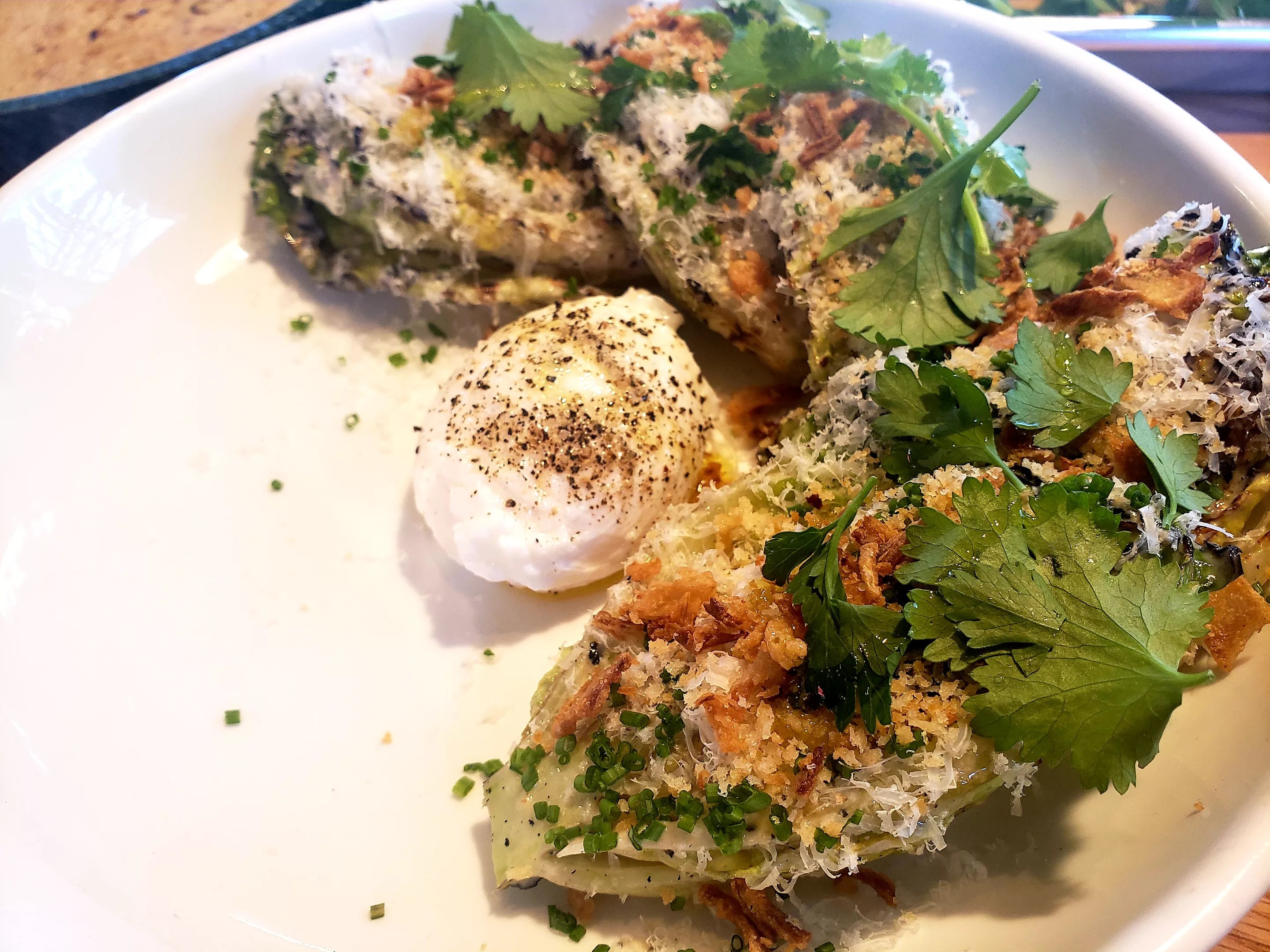 The official opening date isn’t set, but owners are targeting between Wednesday, November 13, and Friday, November 15. Once the doors are unlocked, expect Mister Oso to serve dinner seven nights a week, with brunch and lunch hours coming soon. Chef Blake Edmunds’s take on a shrimp cocktail with a Latin American flair. Linnea Covington Grilled romaine with a poached egg. Linnea Covington