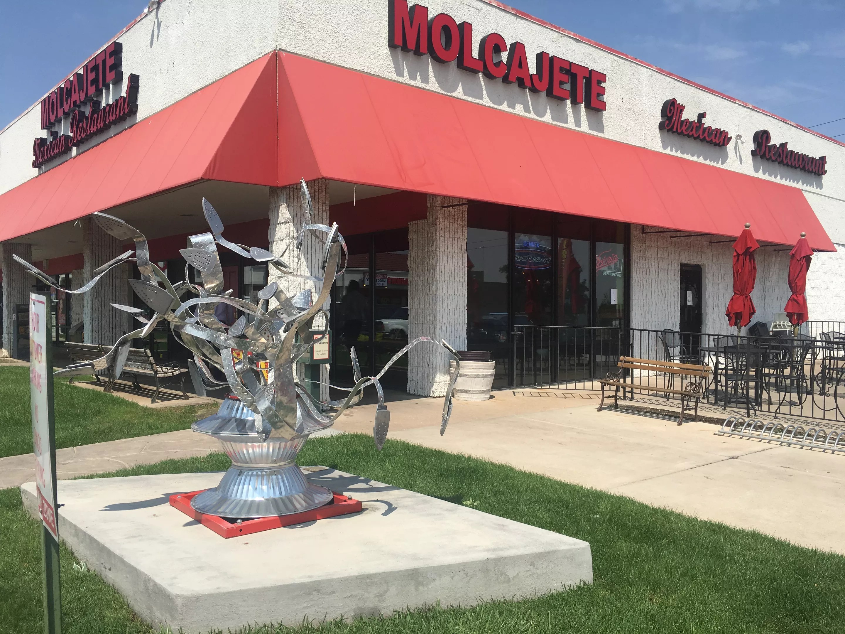 Driving down South Havana Street, you could easily miss Molcajete Mexican Restaurant. Like many eateries worth trying on this stretch of strip malls, bingo parlors and antique shops, it doesn’t look like anything special – until you pull around the corner of the building, which is at 1911 South Havana. There, in front of the restaurant, is the first of many pleasant surprises: a shiny sculpture by Salida artist Jimmy Descant titled “The Steam Plant,” created from repurposed steam irons and light fixtures.