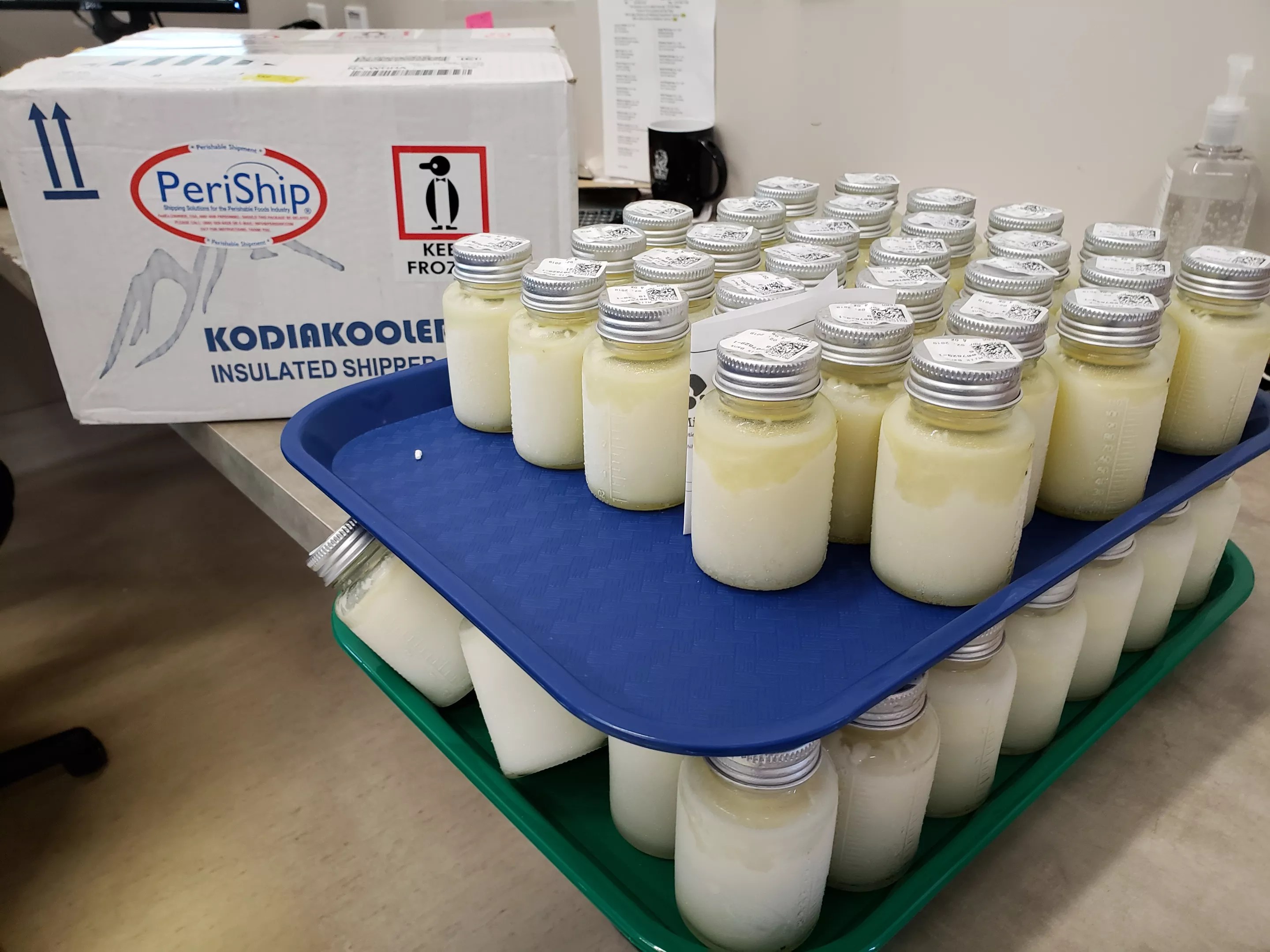 Mothers’ Milk Bank offers five breast-milk options, including full-term, non-fat, early full-term, non-dairy and colostrum, the “liquid gold” that comes before the milk and contains vital nutrients and antibodies for newborns. No matter the type, each batch gets pasteurized and frozen, which is how it can be delivered to parents.