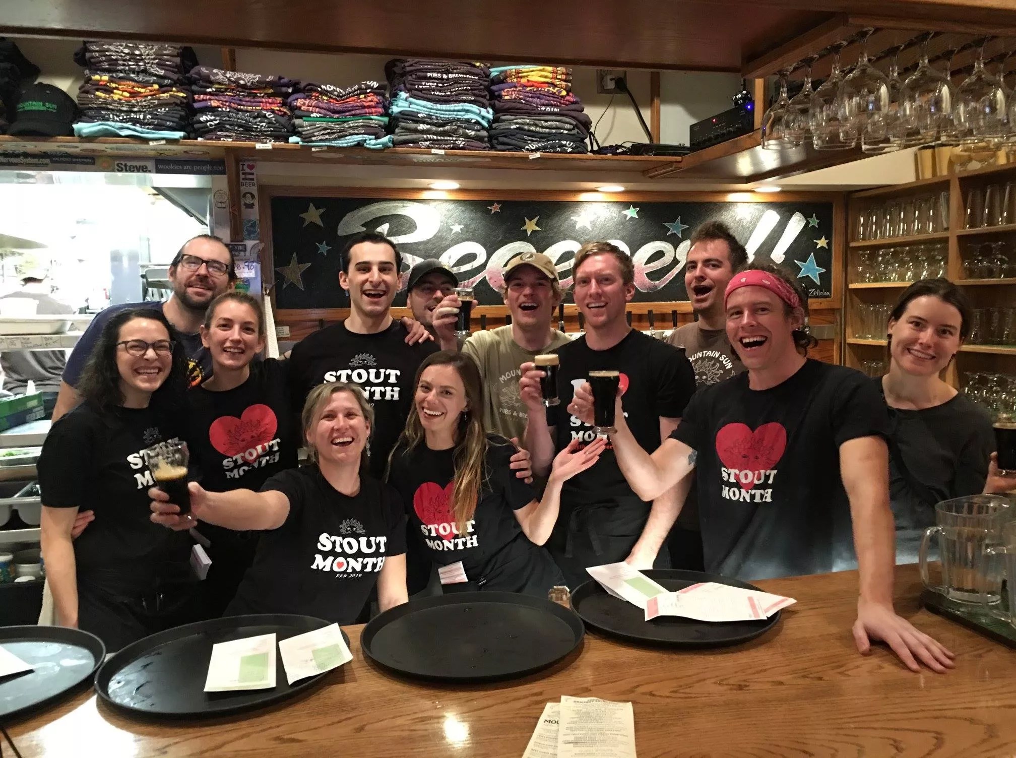 “We will be back. All five locations will be back, and we can’t wait to have a Stout Month when people can kiss and hug and make out and have a beer at the bar with their friends,” he says.