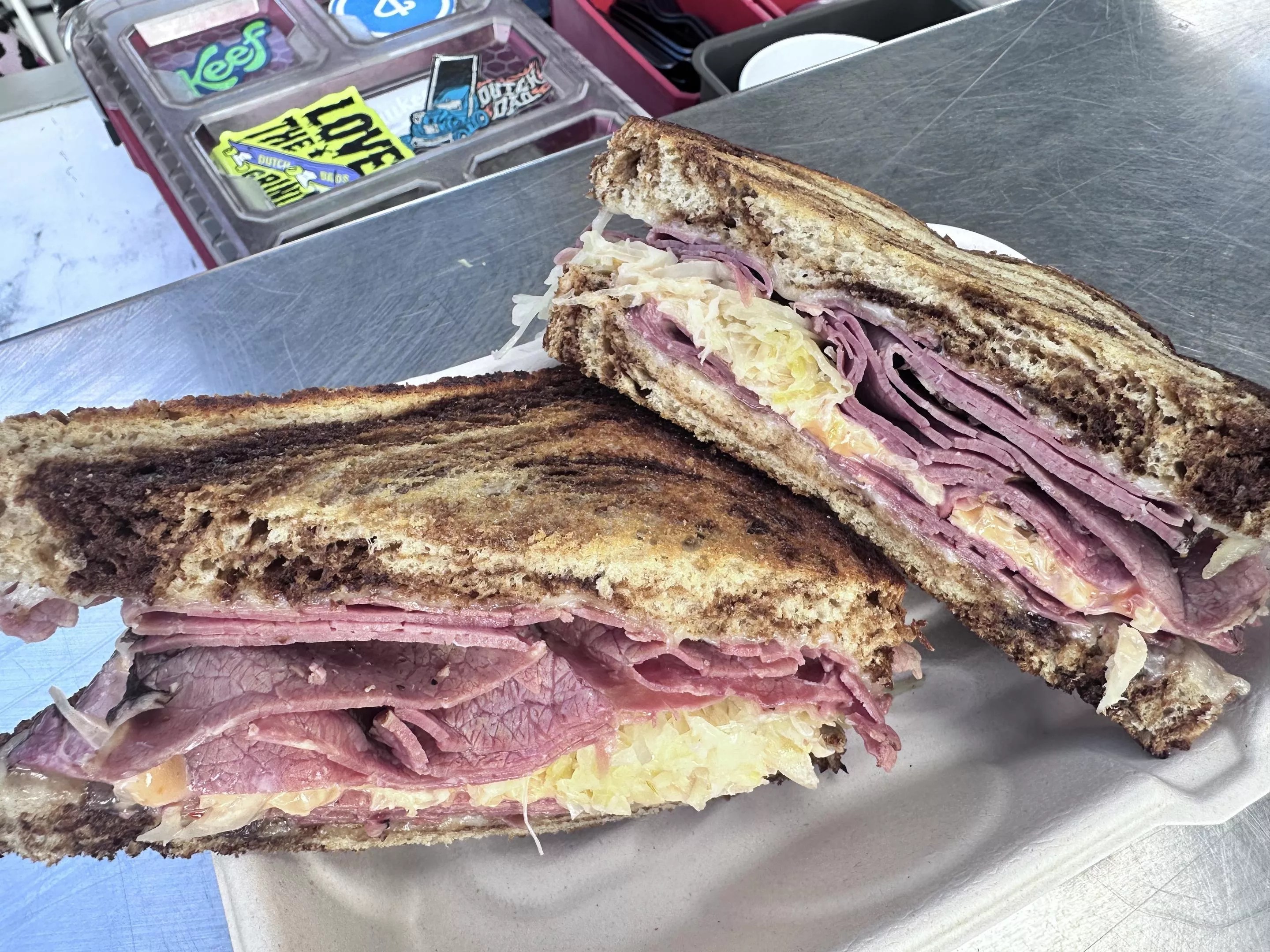 Bandwagon’s pastrami sandwich is called the Rick Reuben — “It’ll make you famous!”