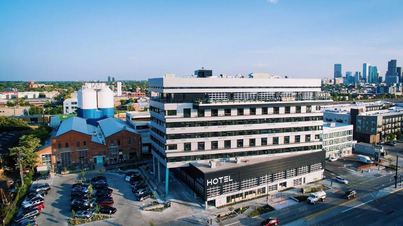 New Belgium’s brewery has a garage door facing Brighton Boulevard.