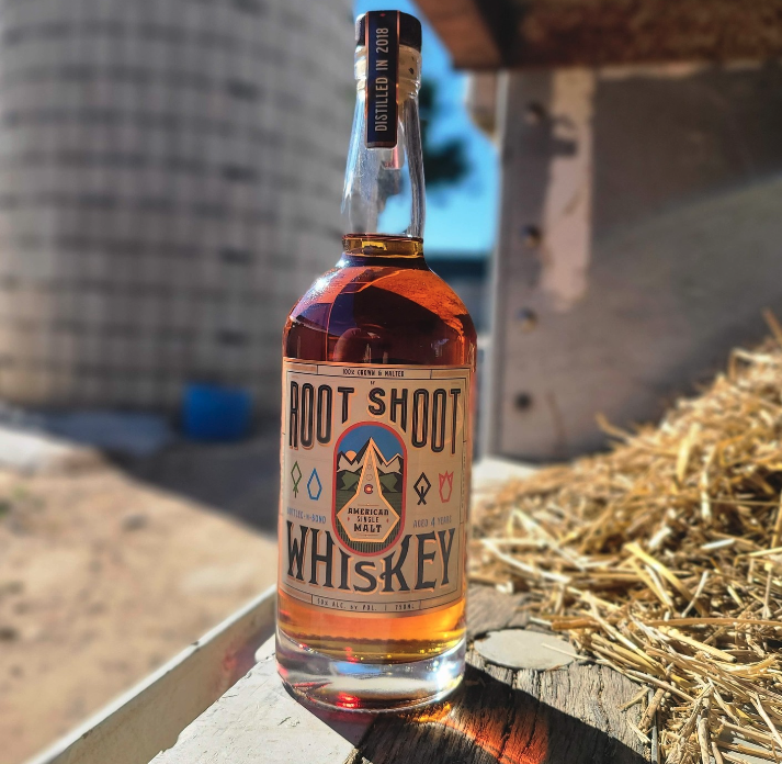 For its first spirit, Root Shoot used Colorado-grown and malted grain, sourced from Olander Farms. The ingredients for the grain-to-glass whiskey are all grown and produced within thirty miles from field to bottle, and the product is 100 proof. It was aged in American white oak barrels for four years and has flavors of spicy botanicals, pastry, baking spice and cocoa dust. It was recently awarded a gold medal at the 2023 New York World Spirits Competition.